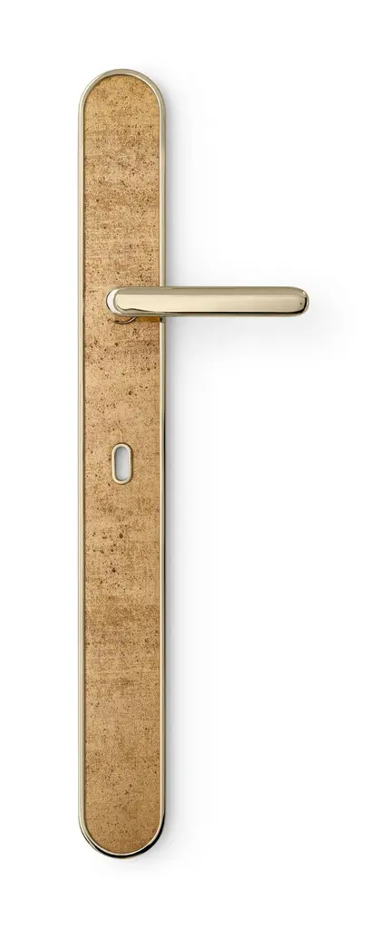 Door Handle Aluminum Plate Brass Handle Body Polished Champagne Vetrite Insert