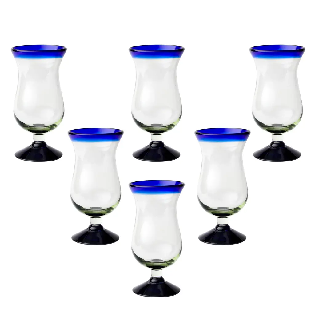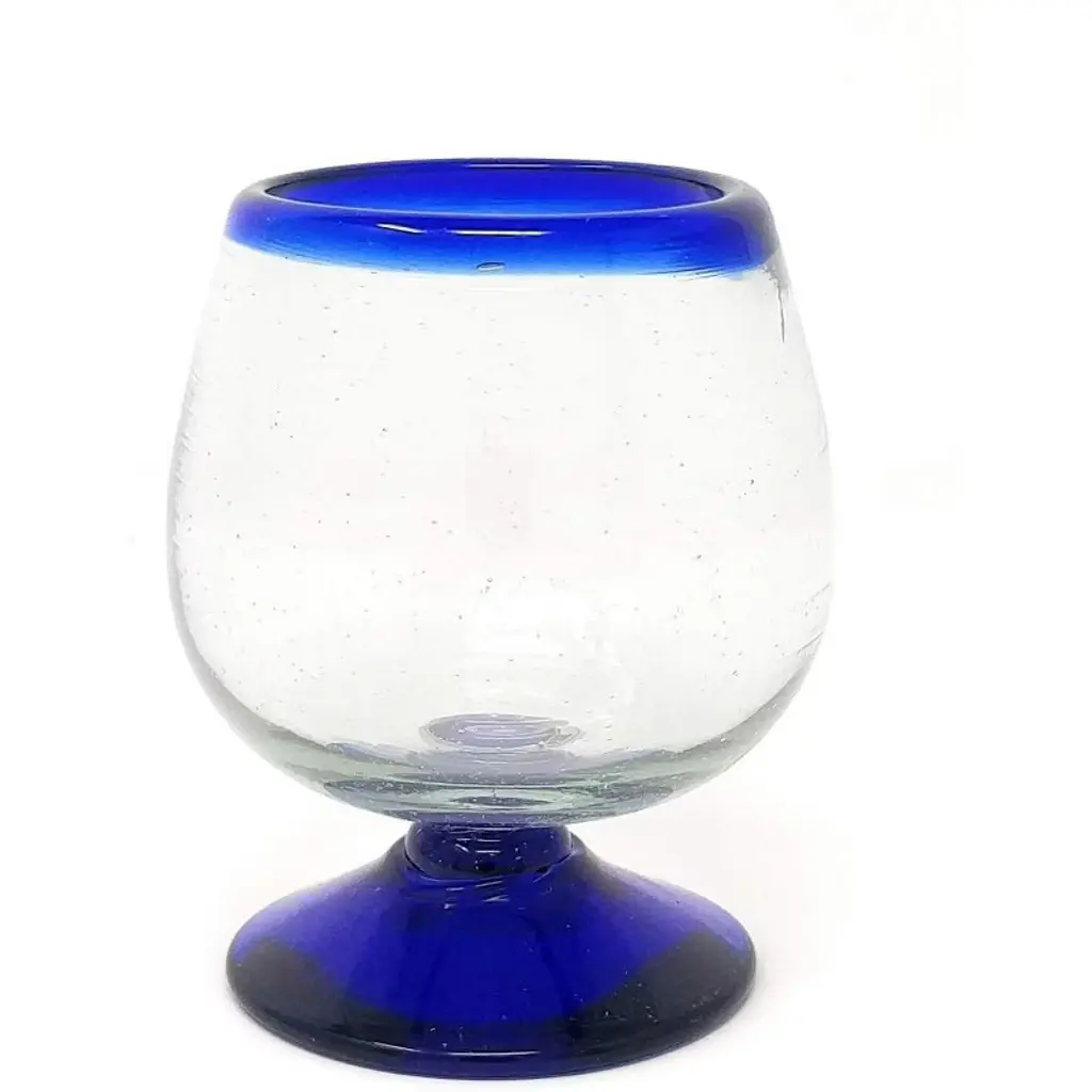 Dos Sueños Mexican Hand Blown Cognac Glasses - Blue Rim - 7Oz - Set Of 4