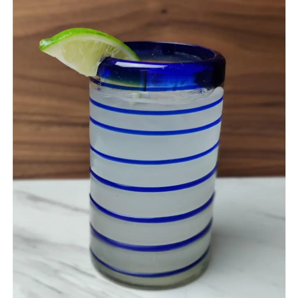 Dos Sueños Mexican Hand Blown Drinking Glasses - Blue Spiral - 14oz - Single Glass
