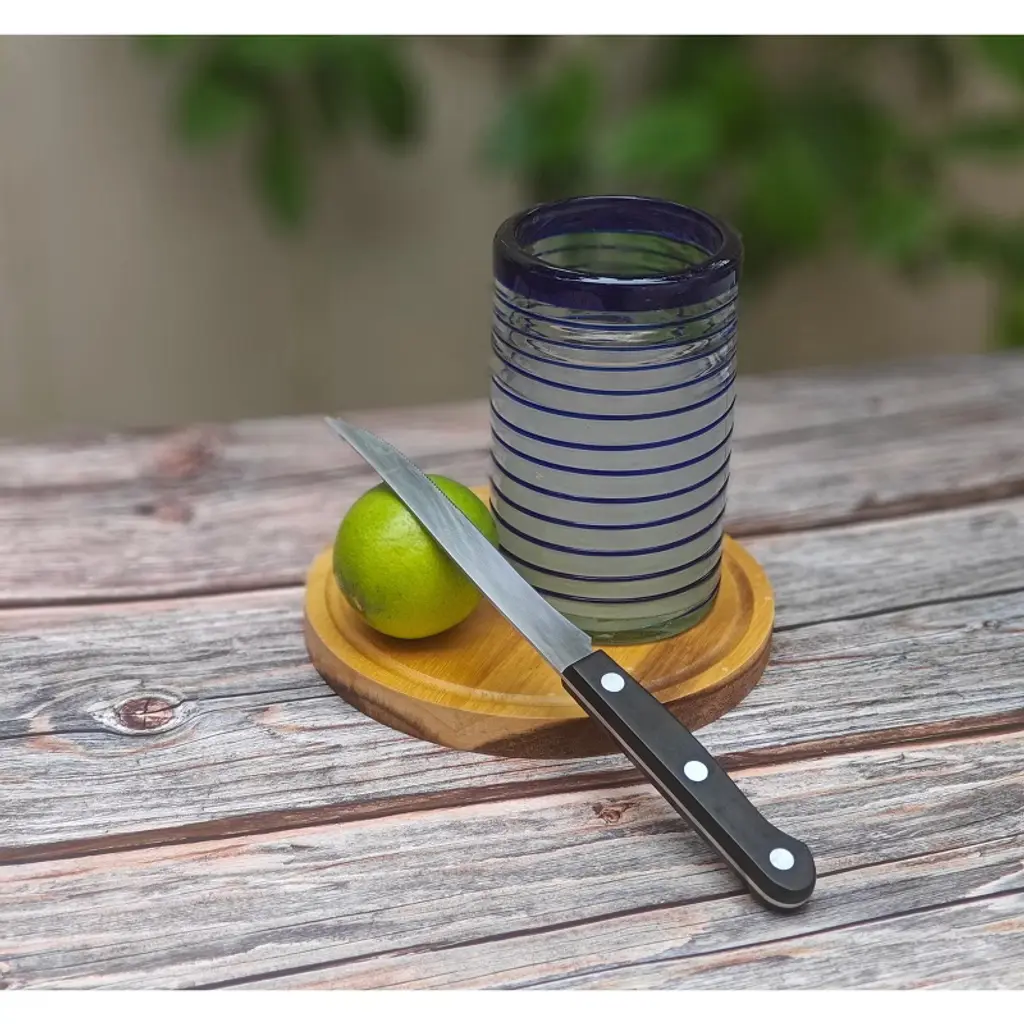 This traditional hand blown drinking glass is perfect for your next fiesta! Use it to serve water, juice, soda or alcohol. The glass adds a great sense of elegance to the dining room that will be enjoyed by everyone. Lead-free, made from sustainable recycled glass. Hand-washing recommended, but dishwasher safe on the top rack. Exceptional artisan quality, thick and sturdy glass. Proudly hand made in Mexico.