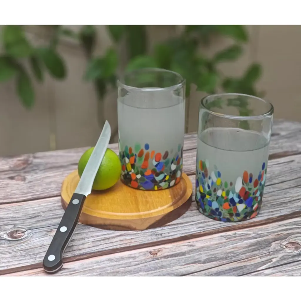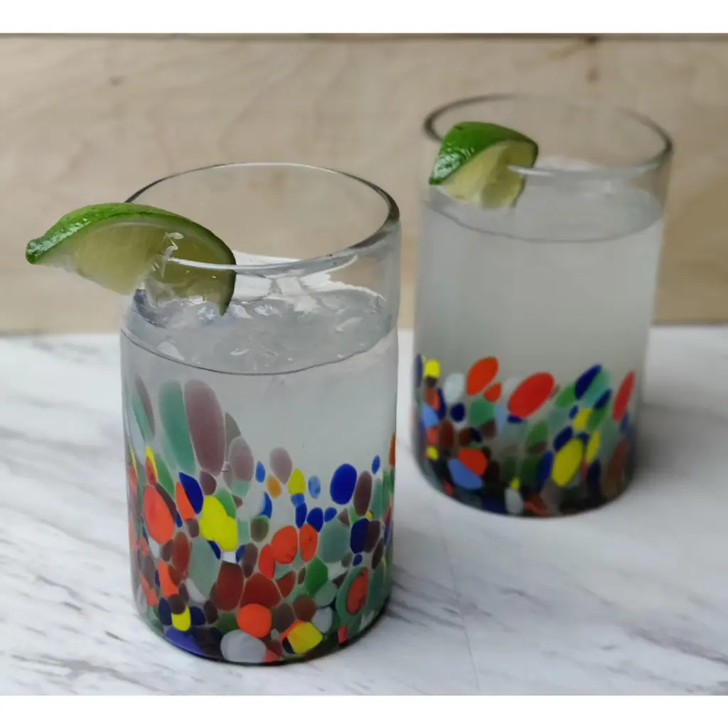 Dos Sueños Mexican Hand Blown Drinking Glasses - Confetti Carmen Design - 14oz - Set Of 2