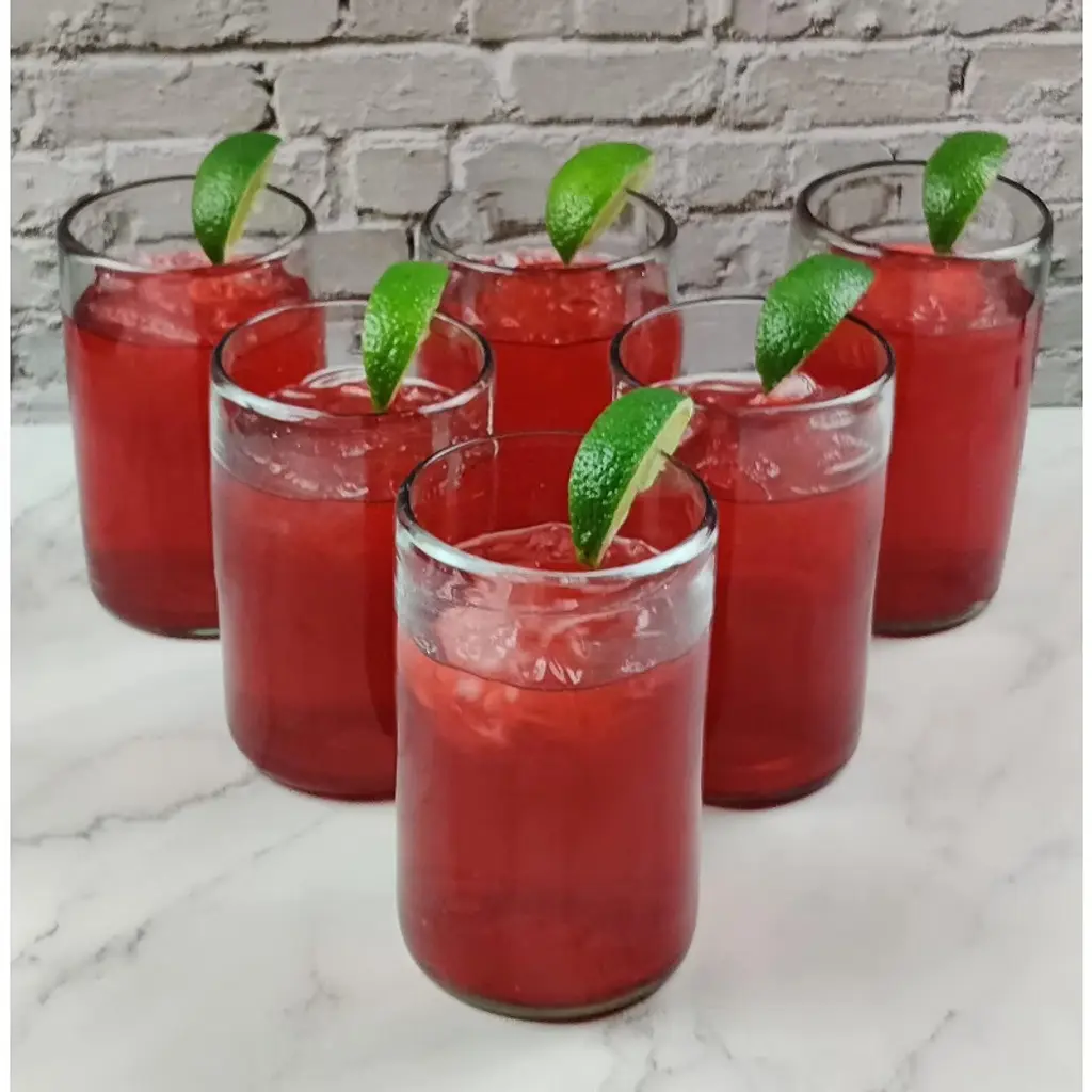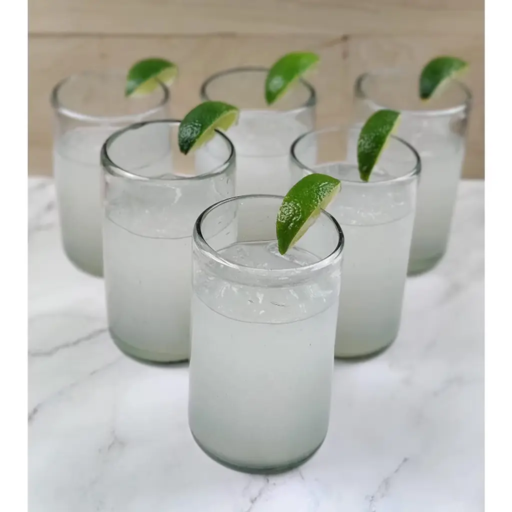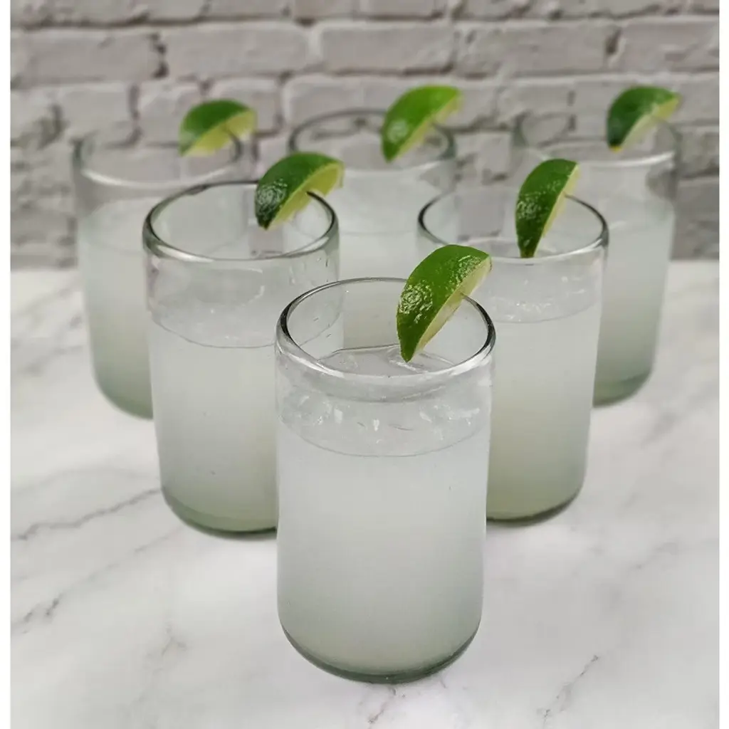 Enjoy your favorite cocktail or drink of choice in style at your next fiesta! Exceptional Artisan Quality. This traditional set of six (6) natural clear drinking glasses is perfect for your next fiesta! Use them to serve water, juice, soda or alcohol. The set adds a great sense of elegance to the dining room that will be enjoyed by everyone. Each blown glass is made by the hands of skilled artisans, may vary slightly in size and show tiny bubbles within the glass that develop from the blowing process. Lead-free, made from sustainable recycled glass. Hand-washing recommended, but dishwasher safe on the top rack. Exceptional artisan quality, thick and sturdy glass. Proudly hand made in Mexico.