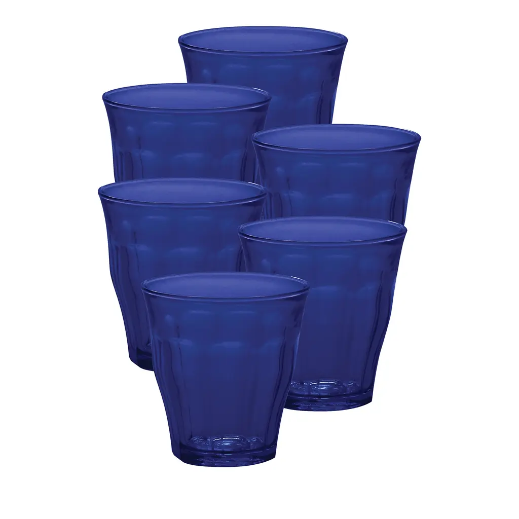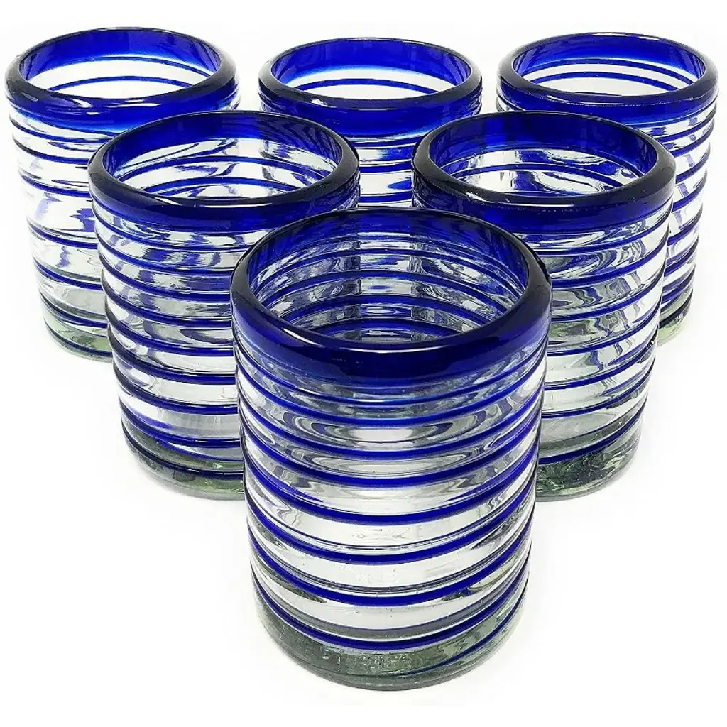 This traditional set of 6 cobalt blown glasses is perfect for your next fiesta! Use them to serve water, juice, soda or alcohol. The set adds a great sense of elegance to the dining room that will be enjoyed by everyone. Each blown glass may vary slightly in size and show tiny bubbles within the glass that develop from the blowing process. Lead-free, made from sustainable recycled glass. Hand-washing recommended, but dishwasher safe on the top rack. Exceptional artisan quality, thick and sturdy glass. Proudly hand made in Mexico.