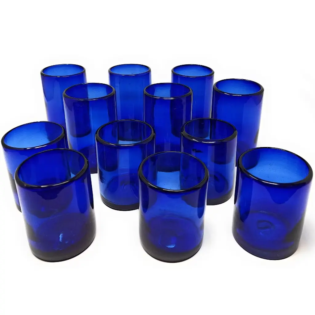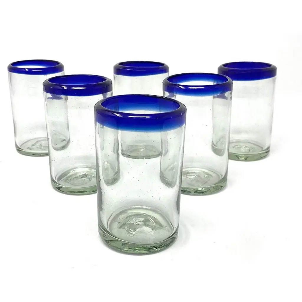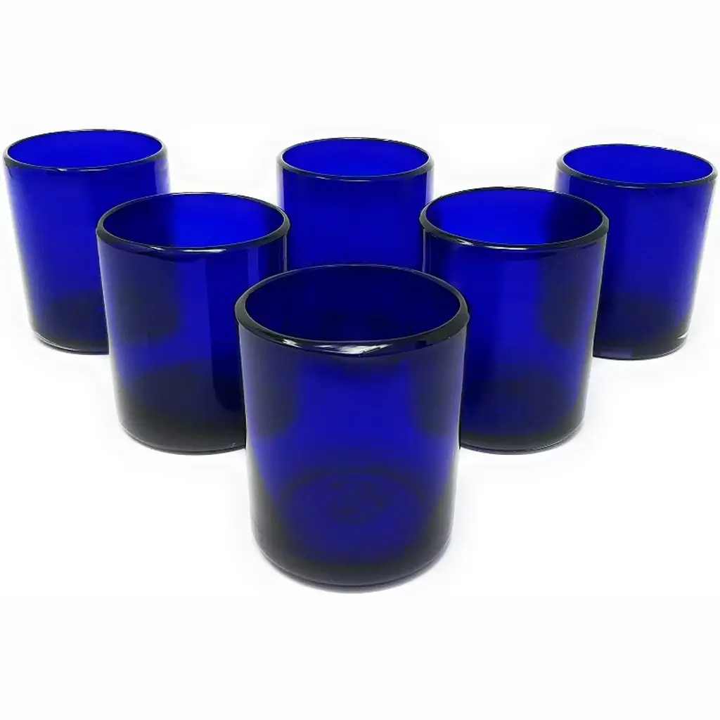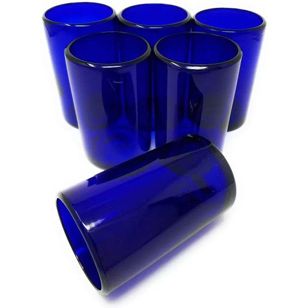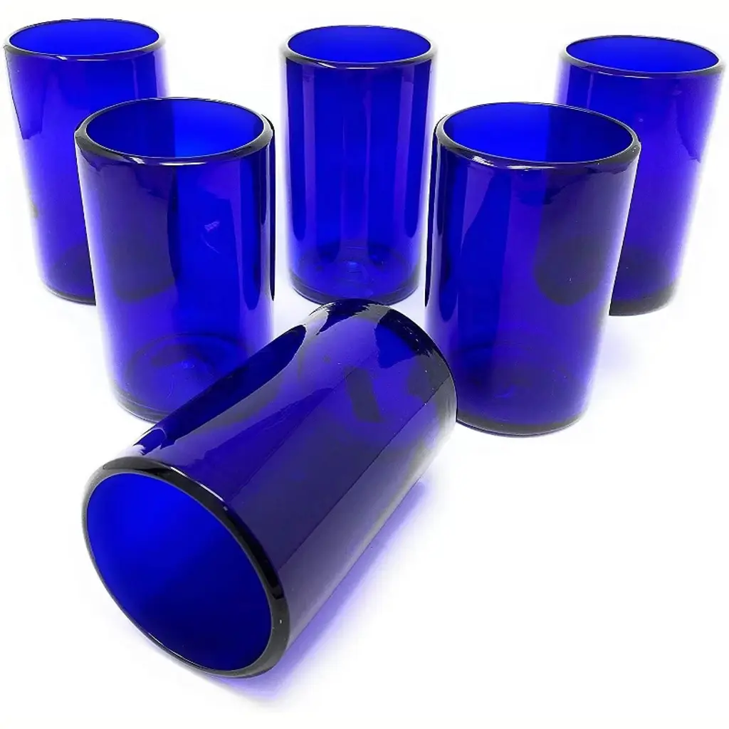Dos Sueños Mexican Hand Blown Drinking Glasses - Pure Cobalt Design - 14oz - Set Of 6