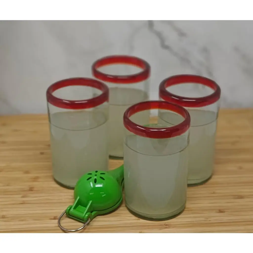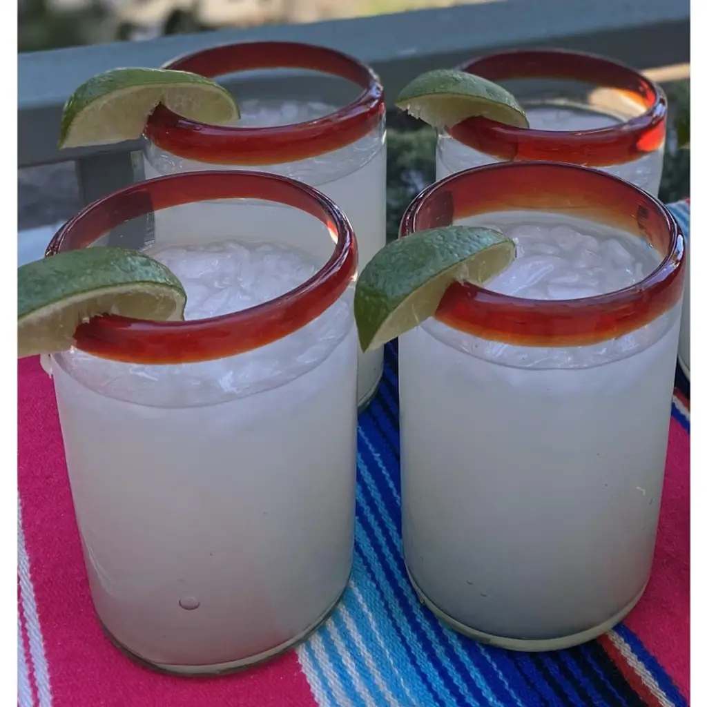 Dos Sueños Mexican Hand Blown Drinking Glasses - Red Rim - 14oz - Set Of 4