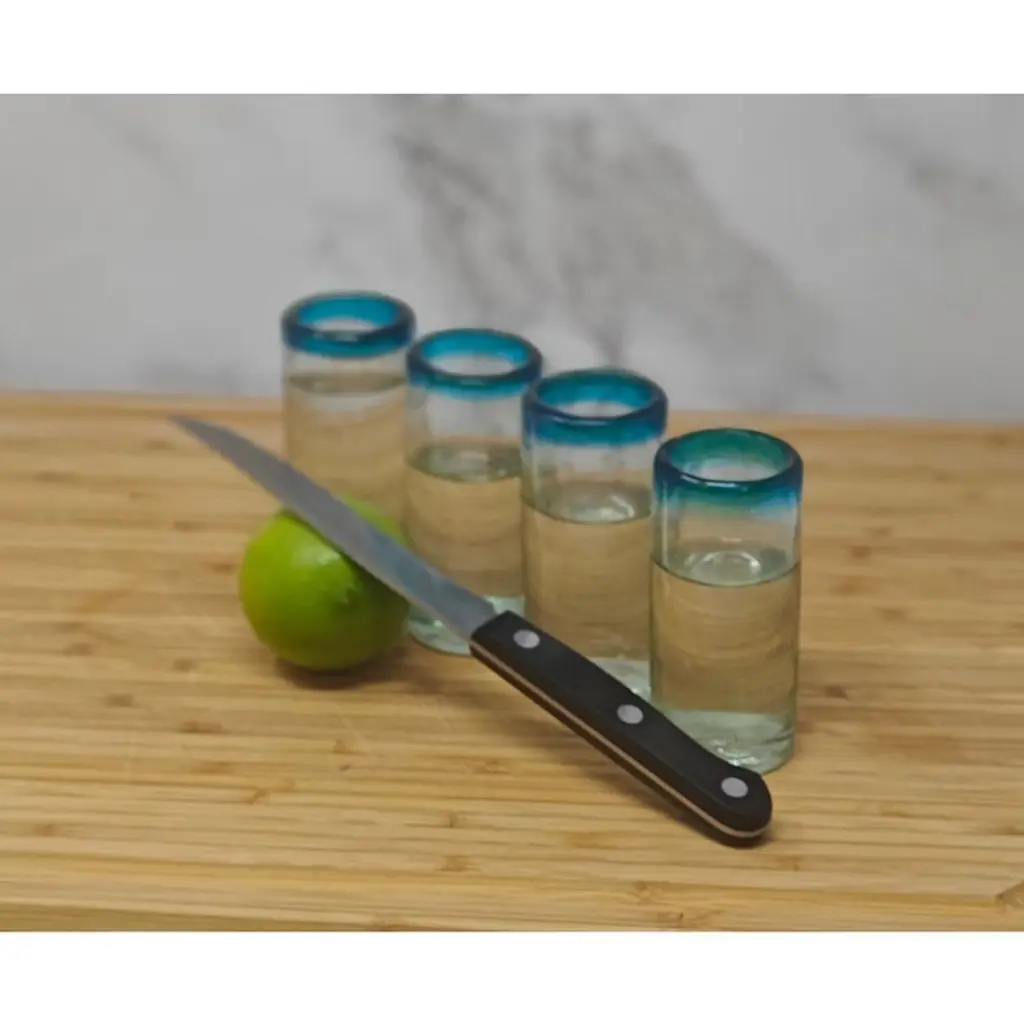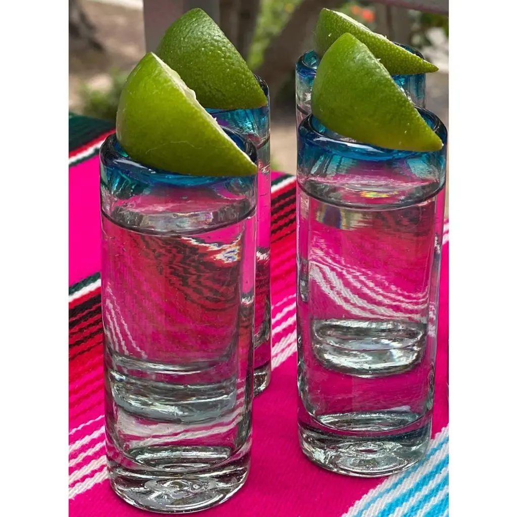 Dos Sueños Mexican Hand Blown Tequila Shot Glasses - Aqua Rim - 2Oz - Set Of 4