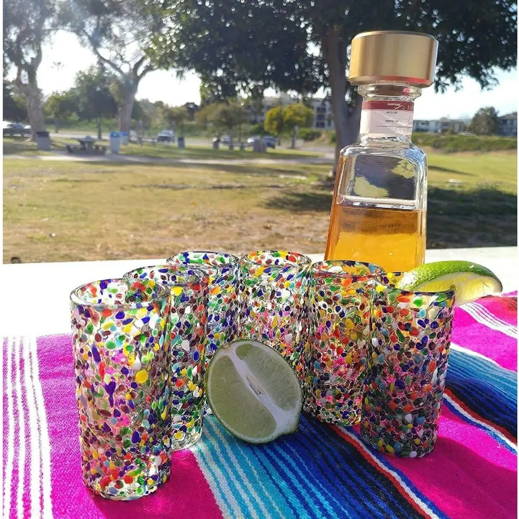Dos Sueños Mexican Hand Blown Tequila Shot Glasses - Confetti Rock Design - 2Oz - Set Of 6