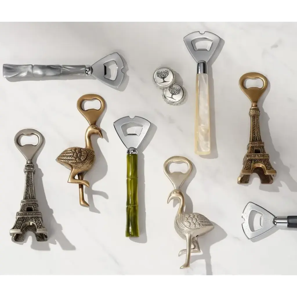 Our Dottie brass flamingo bottle opener sets the tone for playfully elegant entertaining. Sold as a pack of three. Blue Pheasant's products are handmade with care by artisans using natural materials. They are not mass produced, so variation between products should be expected, and this is why we love them! It is these irregularities that makes Blue Pheasant what it is—a special brand whose collections are distinctly handmade, full of charm and originality you’ll never find in machine-made products.