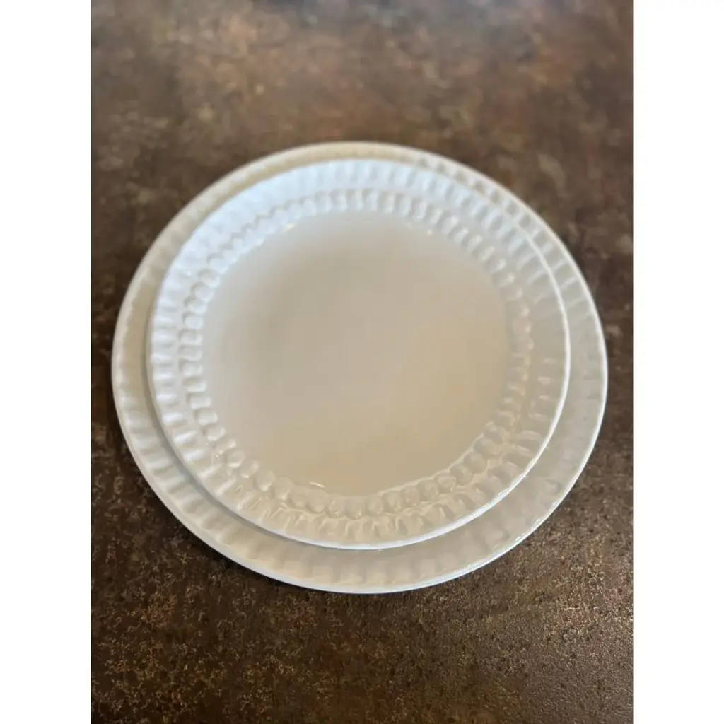 This quirky + cute bowl is the perfect addition to your dining table. Its hand molded dotted edge adds to dimension to a place setting. Its look of hand thrown pottery adds a touch of charm.