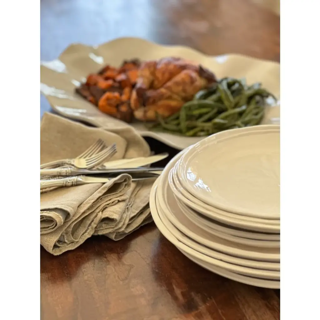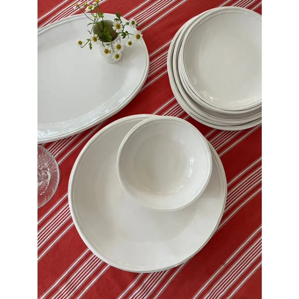 Whether dining indoors or out, your BPA free white double rimmed melamine serving platters will add delightful charm to your table. Entertaining or everyday use will be worry free. Additional pieces are available to create a beautiful table.