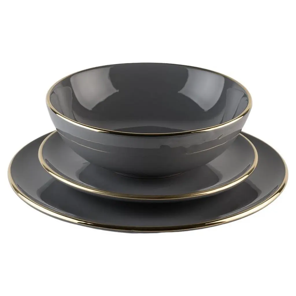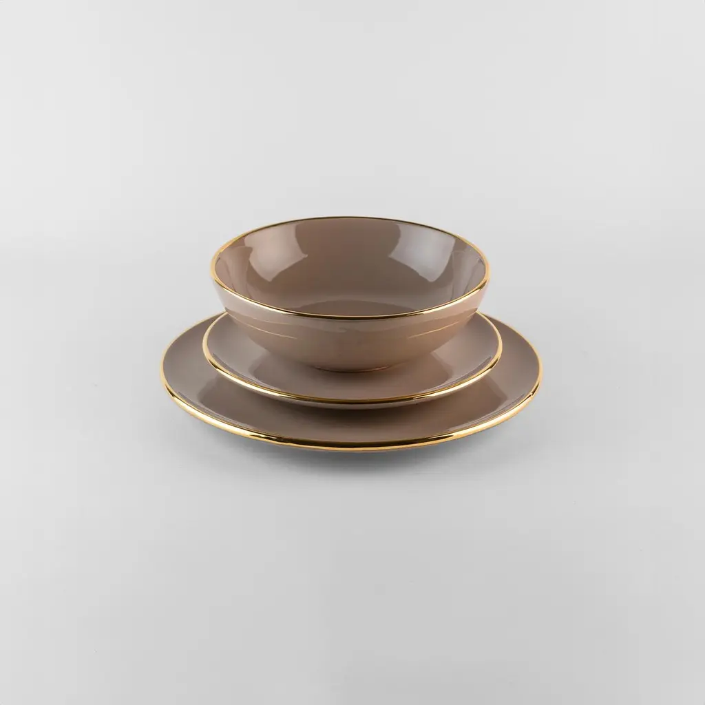Dove Grey Plates Gold Rim: Soup, Holder, Side Plate For 4 Handmade In Italy 2024