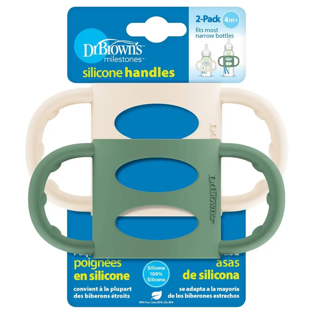 Dr. Brown's Milestones 100% Silicone Narrow Baby Bottle Handles In Green And Beige - 2Pk
