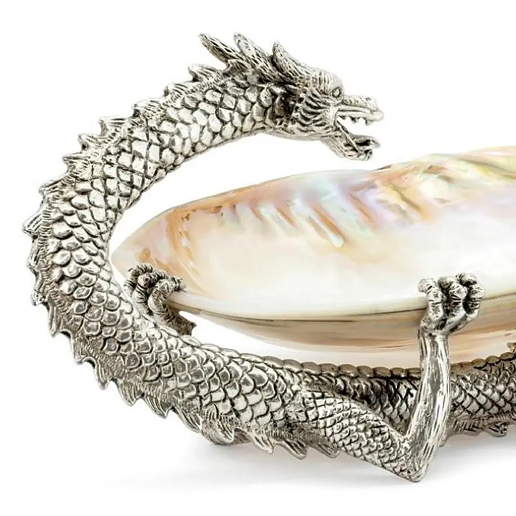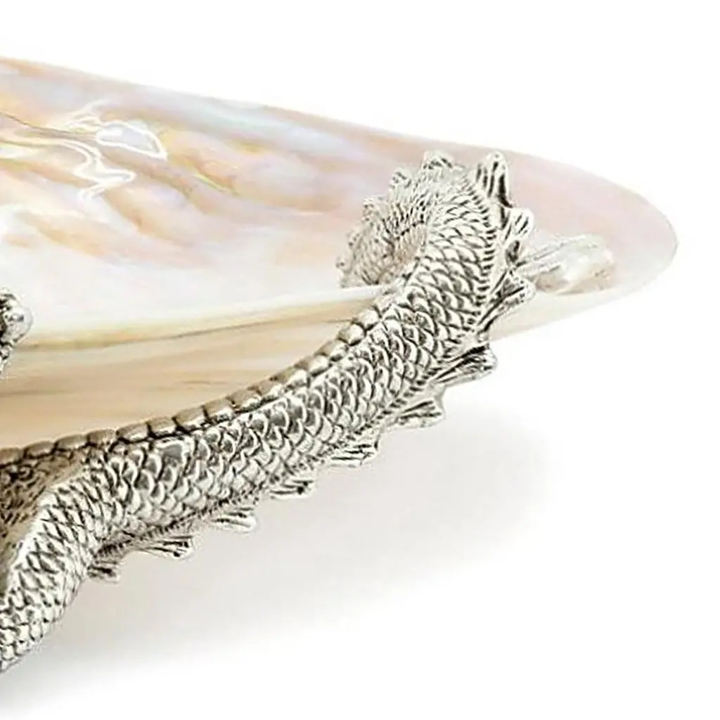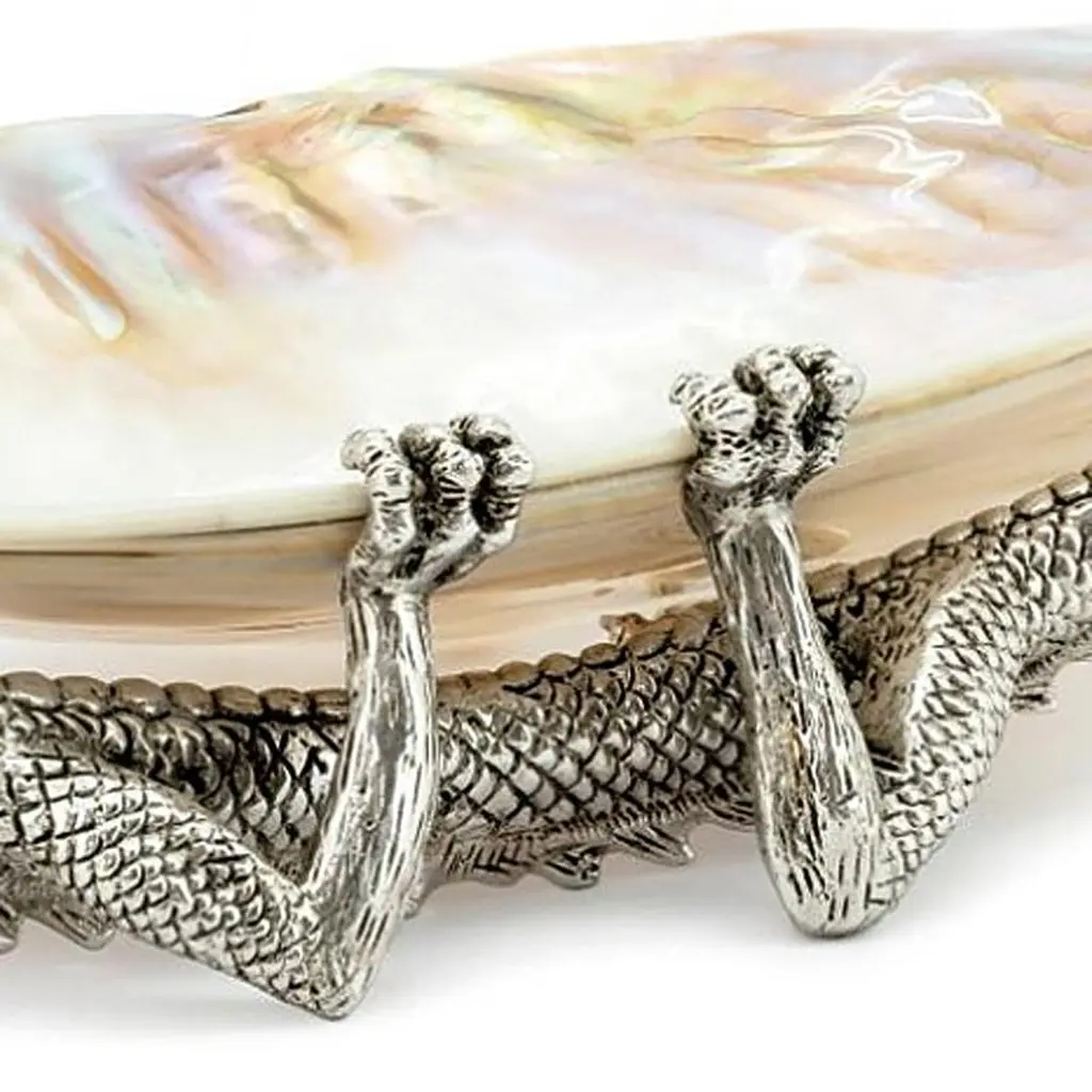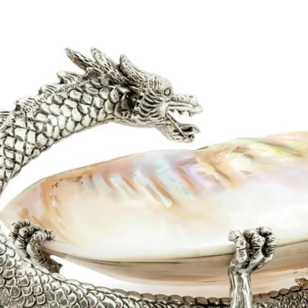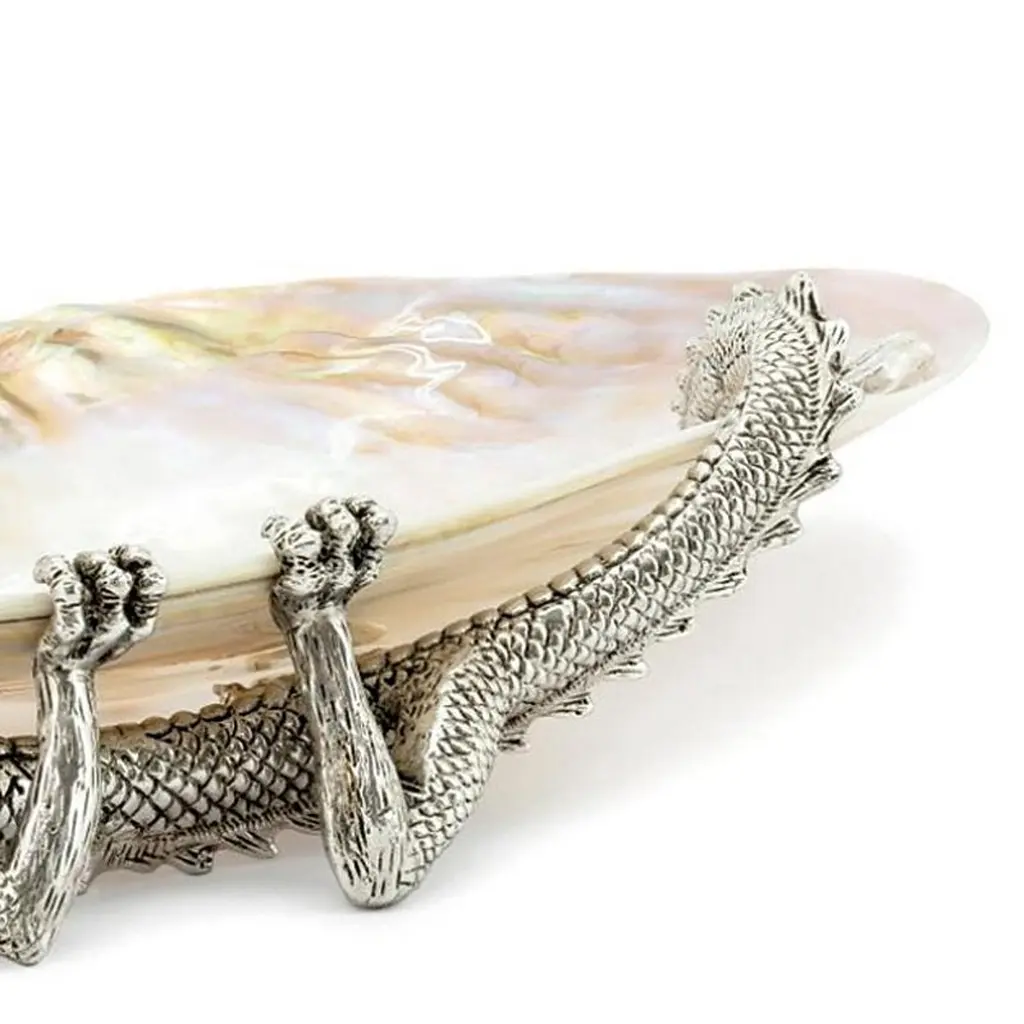 Cup dragon and shell with structure in metal in silver plated finish and with natural polished big shell cup.