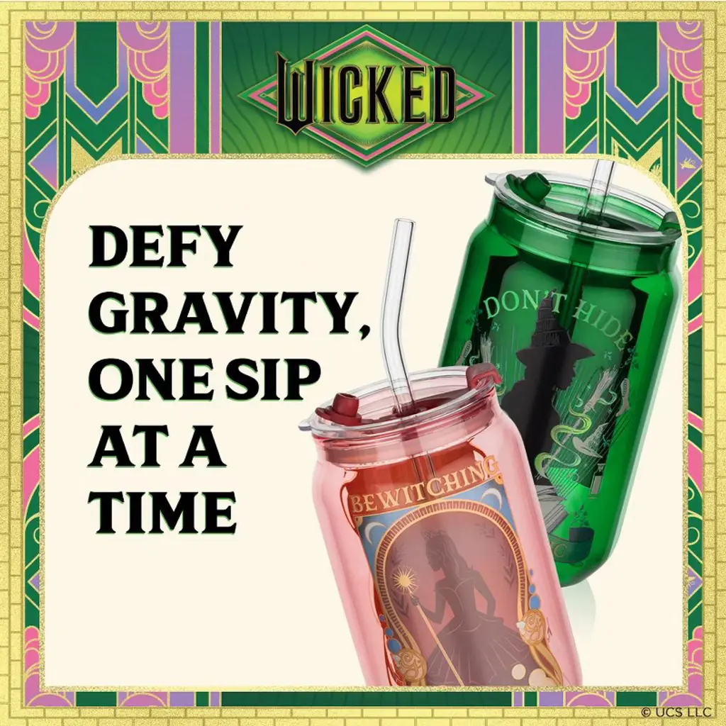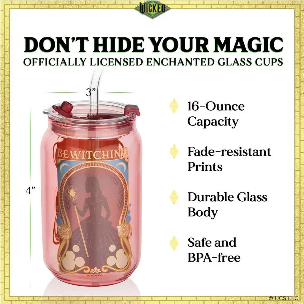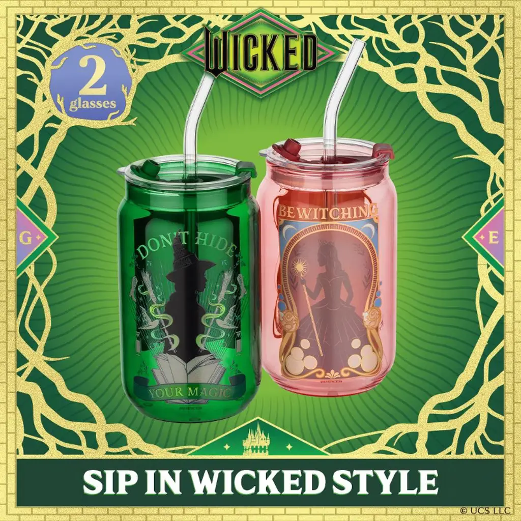 Celebrate the magic of Wicked with these Enchanted Drinking Glasses – a must-have addition for any fan of the hit movie. This enchanting set includes two 16 oz glass cups, each adorned with exclusive Wicked-inspired designs that capture the drama, elegance, and allure of your favorite characters. More than just Wicked movie merch, these reusable tumblers are as practical as they are magical. Made from high-quality, durable glass, they come with snug lids and eco-friendly glass straws—perfect for sipping iced coffee, water, teas, or even wickedly good cocktails. Whether you're headed to a themed party, lounging at home, or gifting a Wicked enthusiast, this tumbler set is a versatile and thoughtful choice. Designed to impress without the need for extra wrapping, this is an ideal pick for Wicked gifts for girls, women, or anyone enchanted by Wicked the Movie. These tumblers aren’t just stylish—they’re sustainable, helping reduce waste while letting your fandom shine. Functional, beautiful, and unforgettable—it’s the ultimate Wicked gift for fans of all ages.