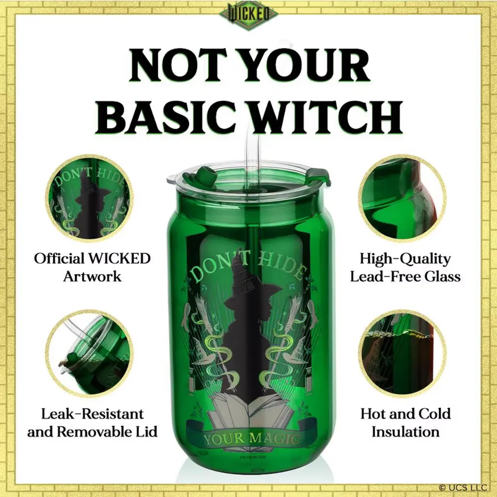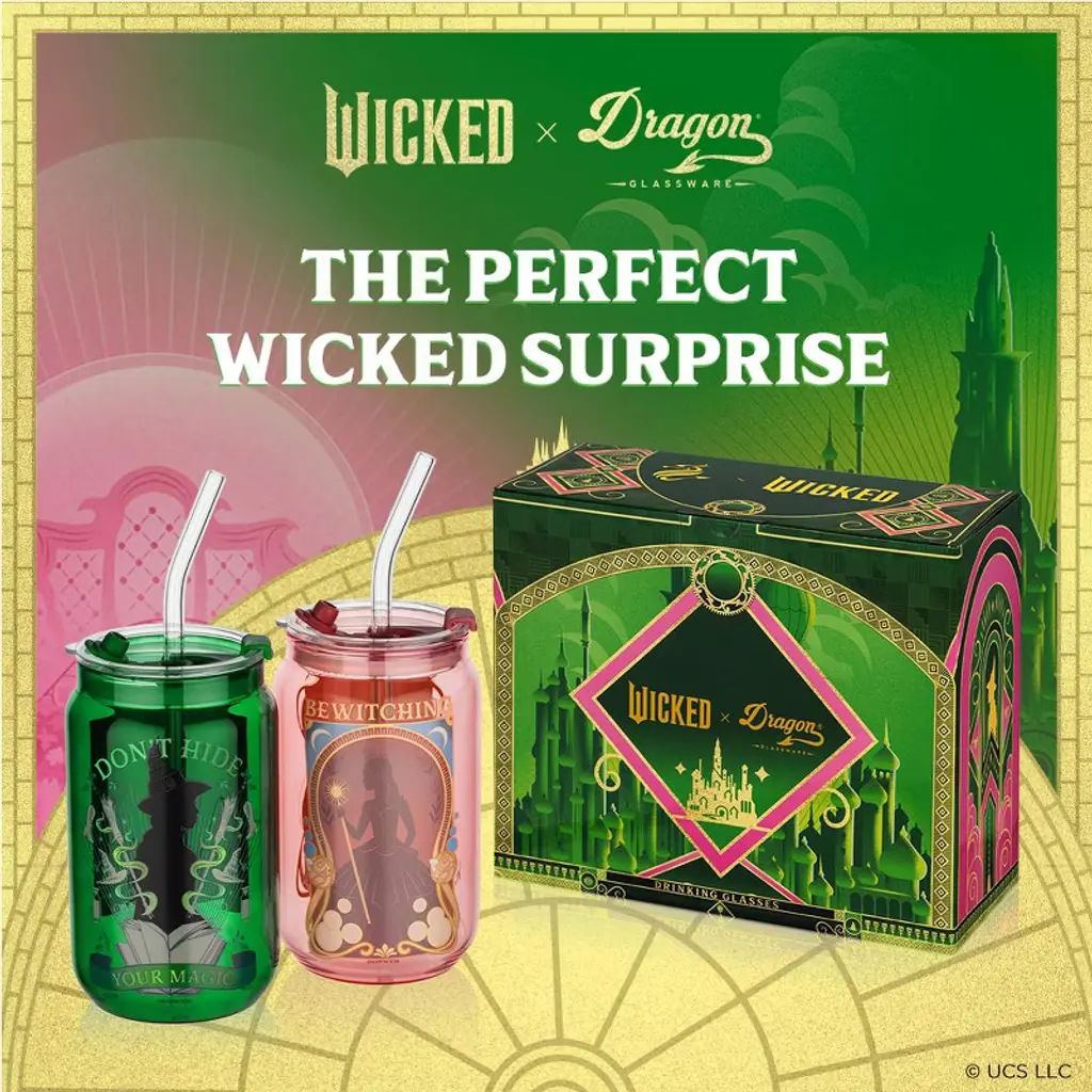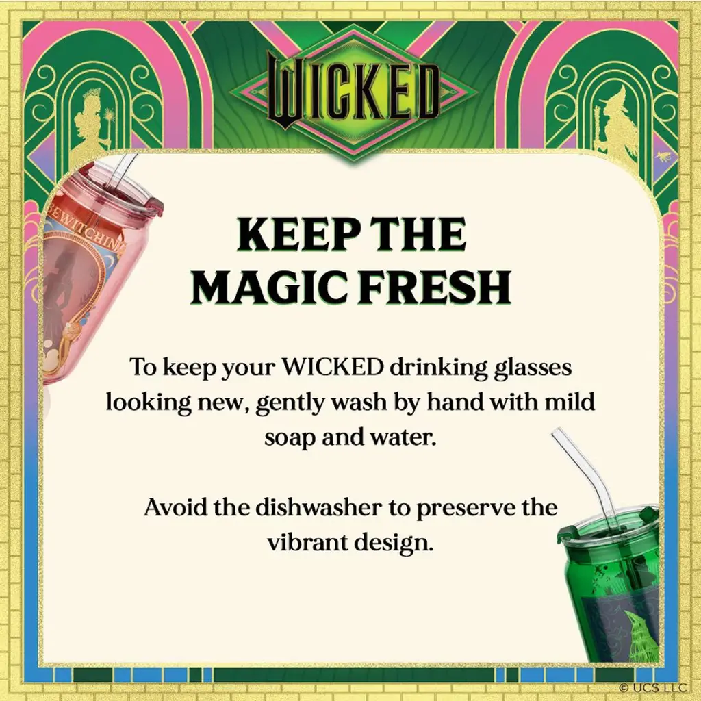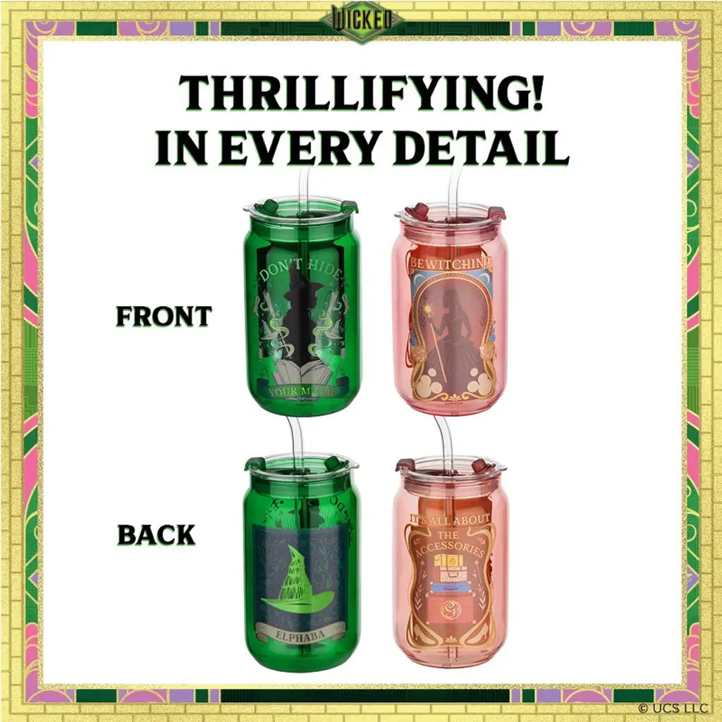 Celebrate the magic of Wicked with these Enchanted Drinking Glasses – a must-have addition for any fan of the hit movie. This enchanting set includes two 16 oz glass cups, each adorned with exclusive Wicked-inspired designs that capture the drama, elegance, and allure of your favorite characters. More than just Wicked movie merch, these reusable tumblers are as practical as they are magical. Made from high-quality, durable glass, they come with snug lids and eco-friendly glass straws—perfect for sipping iced coffee, water, teas, or even wickedly good cocktails. Whether you're headed to a themed party, lounging at home, or gifting a Wicked enthusiast, this tumbler set is a versatile and thoughtful choice. Designed to impress without the need for extra wrapping, this is an ideal pick for Wicked gifts for girls, women, or anyone enchanted by Wicked the Movie. These tumblers aren’t just stylish—they’re sustainable, helping reduce waste while letting your fandom shine. Functional, beautiful, and unforgettable—it’s the ultimate Wicked gift for fans of all ages.