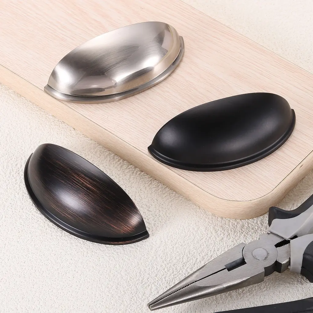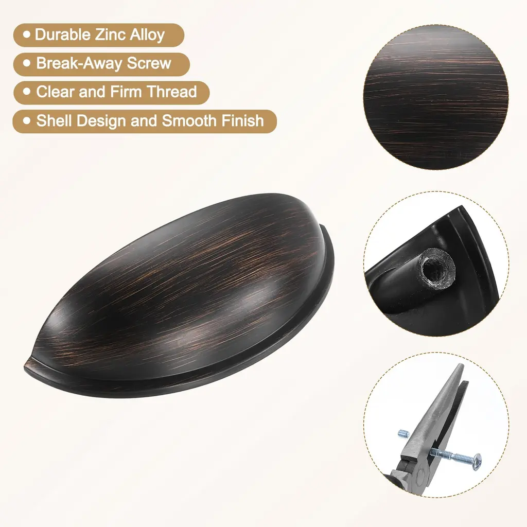 Drawer Pulls, 3" Zinc Alloy Flat Cabinet Cup Pull Shell Handle - Black - 10pcs