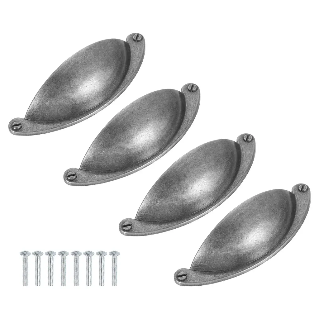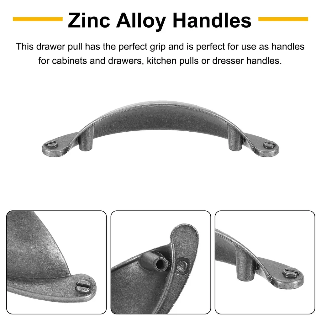 [Good Material] - Made from good quality zinc alloy, our drawer pull offers strength and durability for long-lasting performance. The material's robust nature ensures stability and reliability, it ensures a comfortable and secure grip.[Simple Appearance] - Crafted with a half-moon drawer pull shape, our sleek and simple drawer pulls elevate the look of your furniture. The elegant design adds a touch of sophistication to your dressers and cabinets, creating a cohesive and stylish aesthetic in any room or space.[Easy to Use] - The standard hole spacing makes it simple to replace existing hardware or upgrade your furniture with minimal effort. Insert the included screws into the back of the cabinet door or drawer and secure the drawer cup pull. These pulls are user-friendly and suitable for DIY projects or professional installations.[Scope of Application] - These versatile pulls offer a functional and decorative solution, suitable for use as cabinet and drawer handles, kitchen pulls, or dresser handles. These versatile drawer pulls and handles add a stylish and practical touch to your furniture.Specification:Overall Size: 102 x 26 x 25 mm / 4.02" x 1.02" x 0.98" (L x W x H)Hole Distance: 64mm / 2.52"Material: Zinc AlloySurface Treatment: ElectroplatingColor: Black SilverPackage Content: 4Pcs x Drawer Pulls with 8Pcs x 27mm Screws