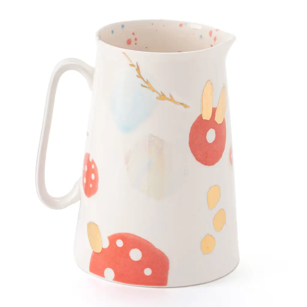 The collection includes two and three-pint Jugs. Manufacturing of this product has been realized with hand-crafted procedures and not industrial. Small imperfections, subsidence, and ripples of the surface are deliberately present and they are a feature of the product, proving the hand-made manufacturing procedure.