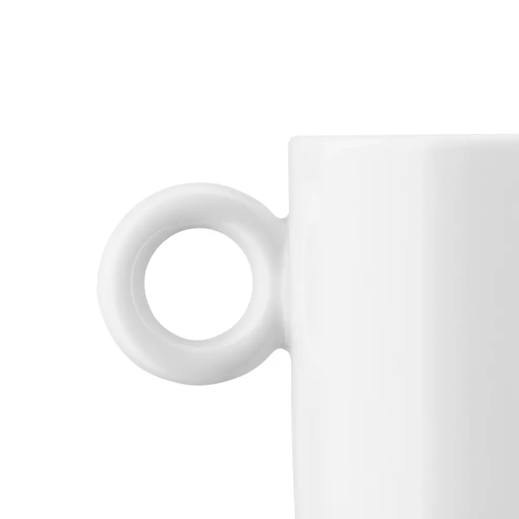 Drink your favorite coffee from a cup that you’ll love to hold and to admire, day after day. Created by designer Marcel Wanders for Alessi, the Dressed Mocha Cups defy passing trends with a timeless design. The minimalist mugs are made from white porcelain with a beautiful glossy surface and have ring-shaped handles that are a shared detail of all Dressed cups and teacups. The high-quality material and crafting method make these coffee mugs safe to use in the microwave and dishwasher. Use this set of four cups with the matching coffee saucers or breakfast plates from the same series.