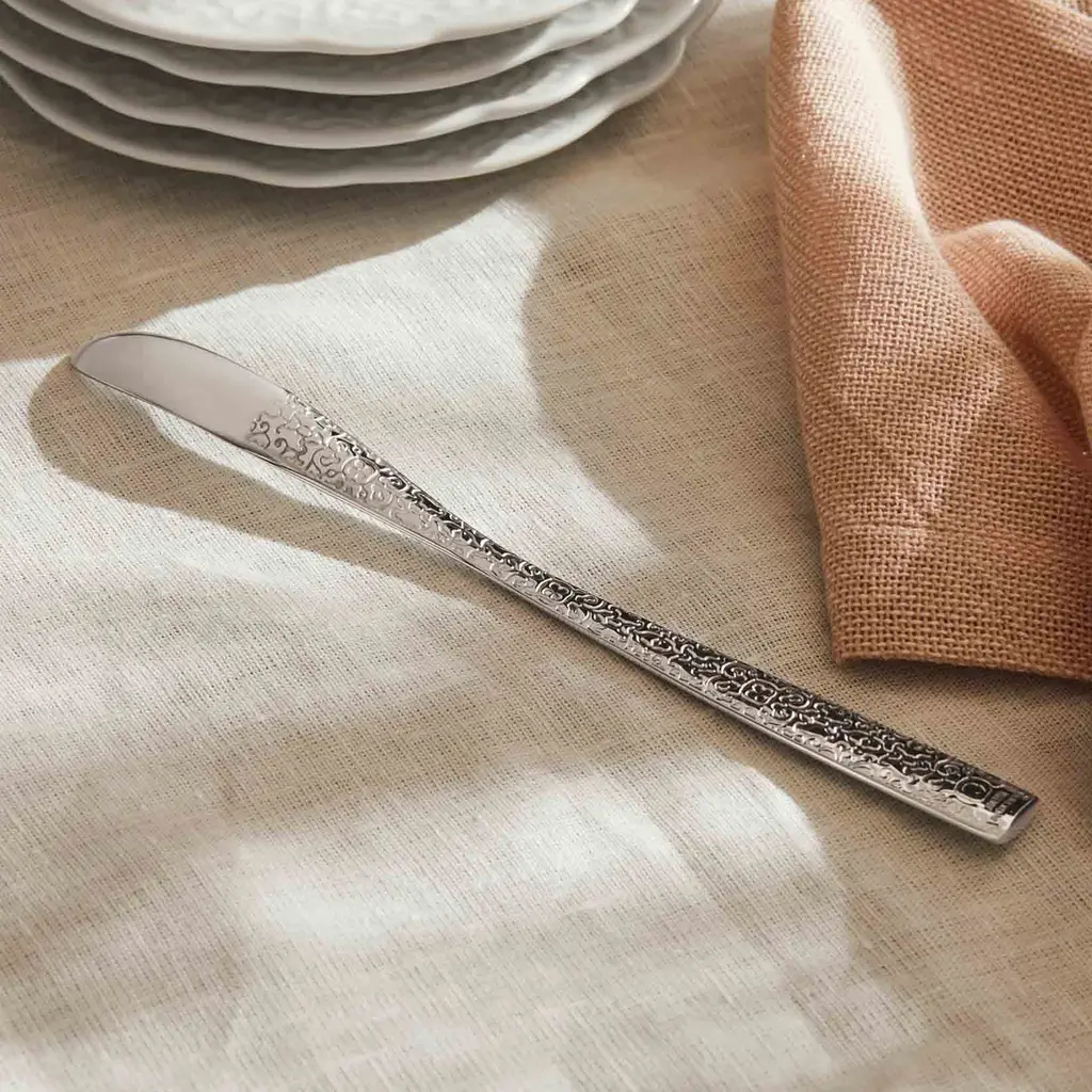Pretty and beautifully detailed, the Alessi Dressed Latte Macchiato Spoon is dressed to impress with an intricate pattern that stands out in relief. Designed by Marcel Wanders, this set features an ornamental design on one side of each spoon, delighting both by sight and touch. The stainless steel material boasts a polished finish that highlights the twists and turns of the flowing lines. Created for latte macchiato and other types of coffee, this stylish spoon set comprises 6 pieces made from 18/10 stainless steel. Great as a housewarming gift for coffee lovers who love refined designs.