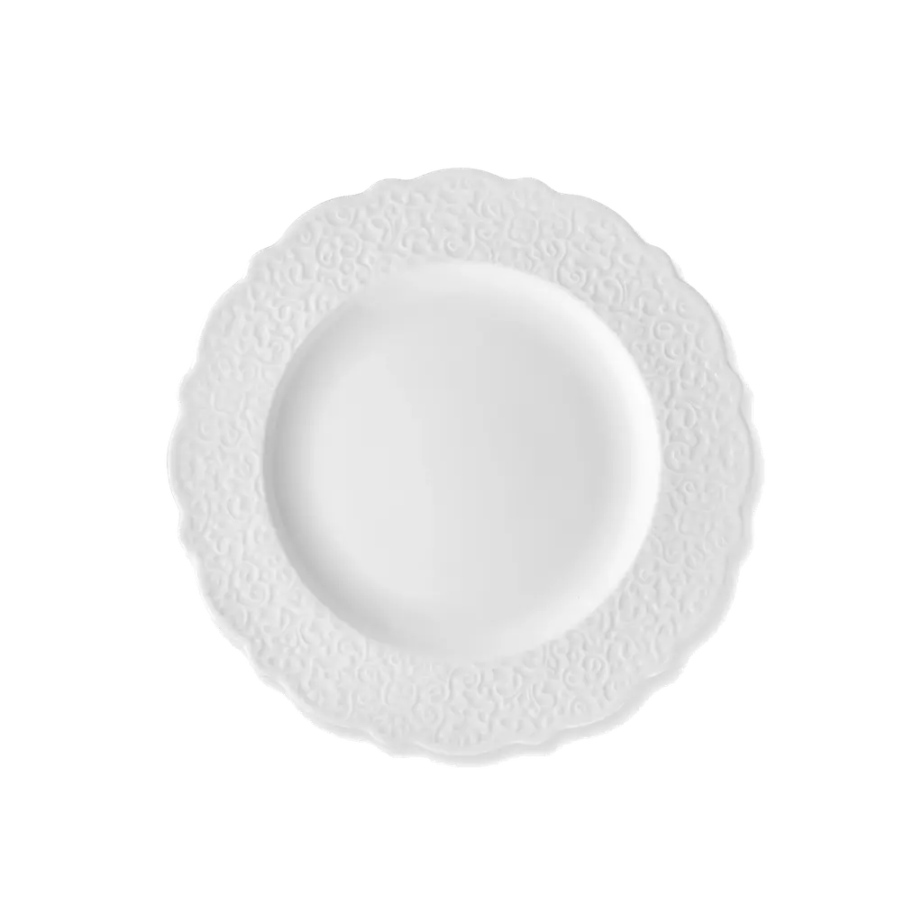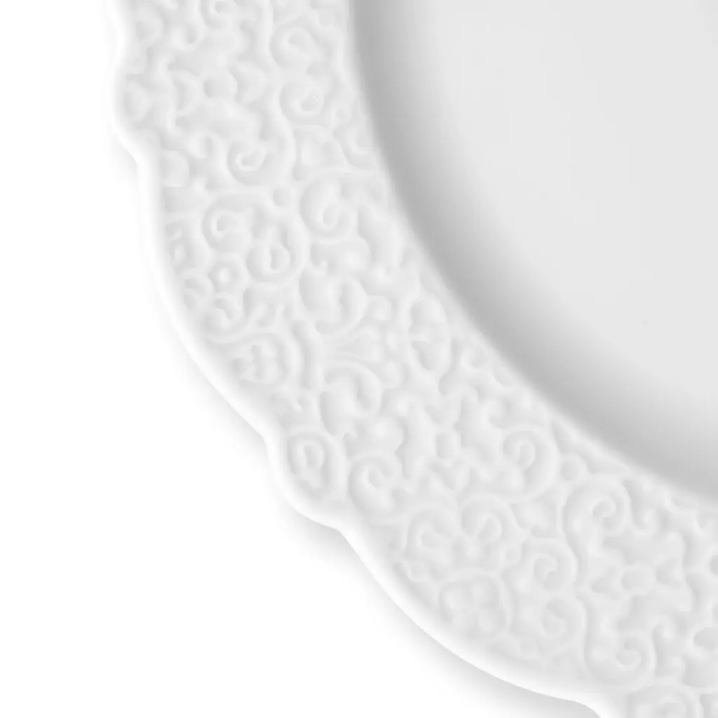 A testament to Marcel Wanders’ design acumen for Alessi, the Dressed serving plate seamlessly combines elegance with function. This round, generously-sized platter is crafted in pure white porcelain, mirroring the pristine aesthetics of the entire Dressed tableware collection. Its distinguishing feature is the refined decoration meticulously detailed along its rim, subtly elevating its minimalist design. Ideal for presenting a range of culinary delights, from appetizers to main courses, the plate stands as a sophisticated complement to any dining setting. With the Dressed serving plate, every dish is not only presented but celebrated, making it a staple for those who value understated luxury.
