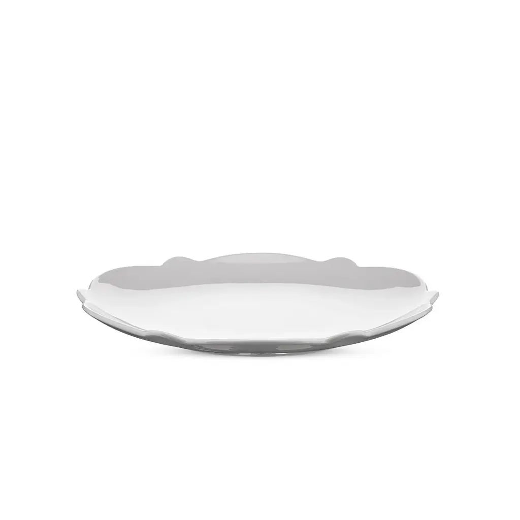 A gentle scallop drifts around the rim of Marcel Wanders’ Dressed side plate, catching light like a pressed lace edge without tipping into fuss. The rest is clean, bright porcelain—no embossing on the face, no color to compete with whatever lands at center stage, be it a citrus tart, folded prosciutto, or a sliver of manchego. At eight inches across, the plate feels roomy on a crowded table yet stacks neatly when the night winds down. Sold in a set of four, each piece balances Alessi’s knack for everyday utility with a quiet nod to ceremony: small enough for aperitivo, crisp enough for dessert, sure-footed in the dishwasher, and ready to mingle with modern or heirloom settings alike.