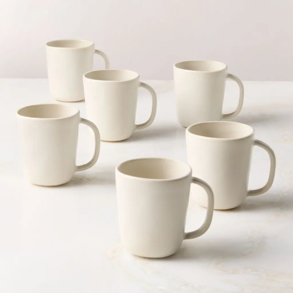 Drift White Mugs With Reactive Glaze 12oz Set Of 6