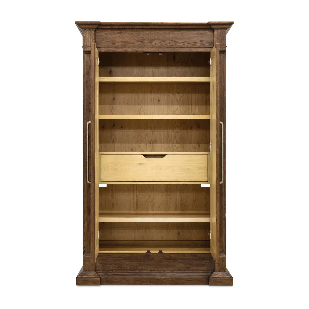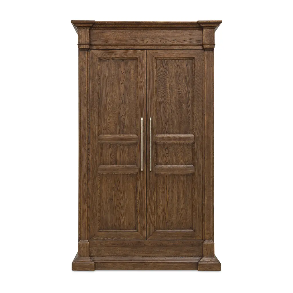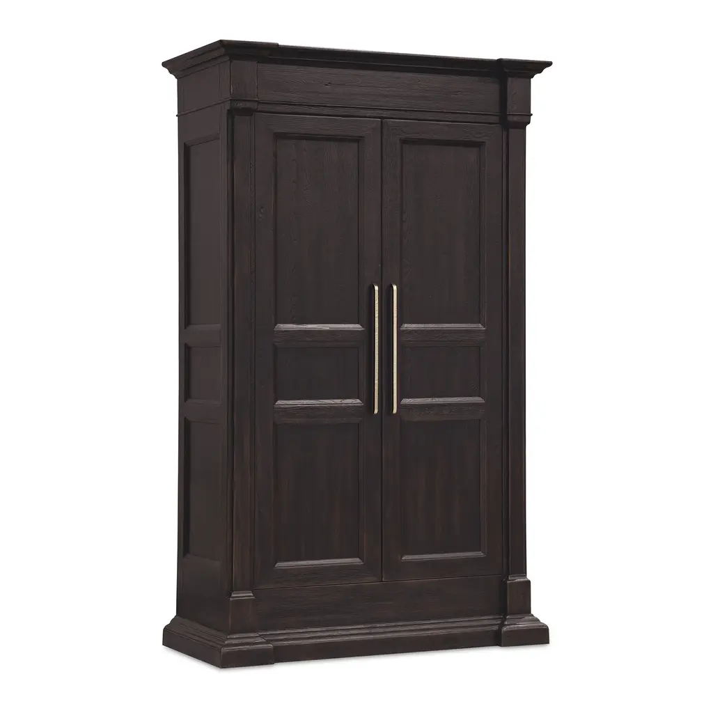 A commanding and versatile storage solution, the Driftwood Storage Cupboard from Hooker Furniture brings rustic character to the bedroom. Timeworn finish, this substantial piece offers a wealth of organization. Behind two full-length doors lies a highly adaptable interior, featuring a removable clothing rod and adjustable shelves to suit your needs. A tray drawer with a jewelry tray and a clever lift-lid hidden storage compartment provide thoughtful, discreet spaces for your most treasured items. Highlights: