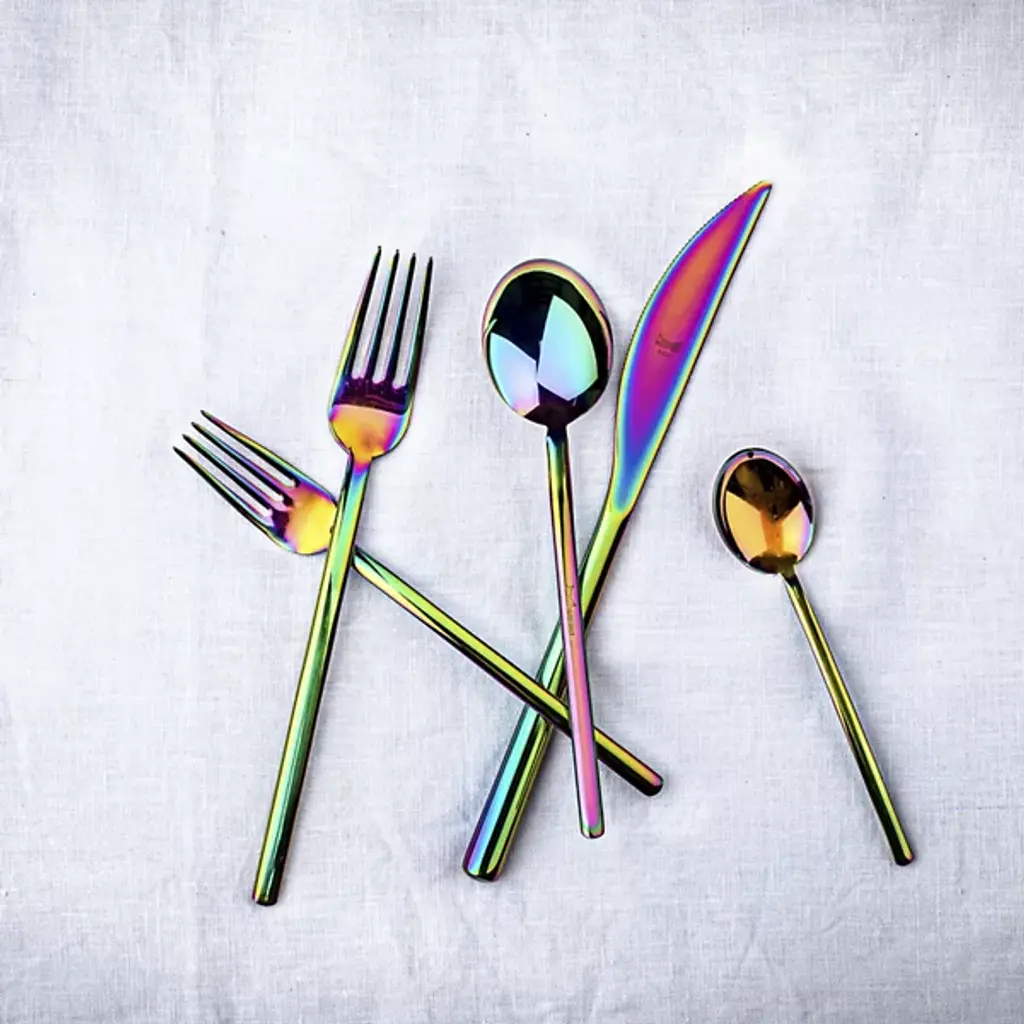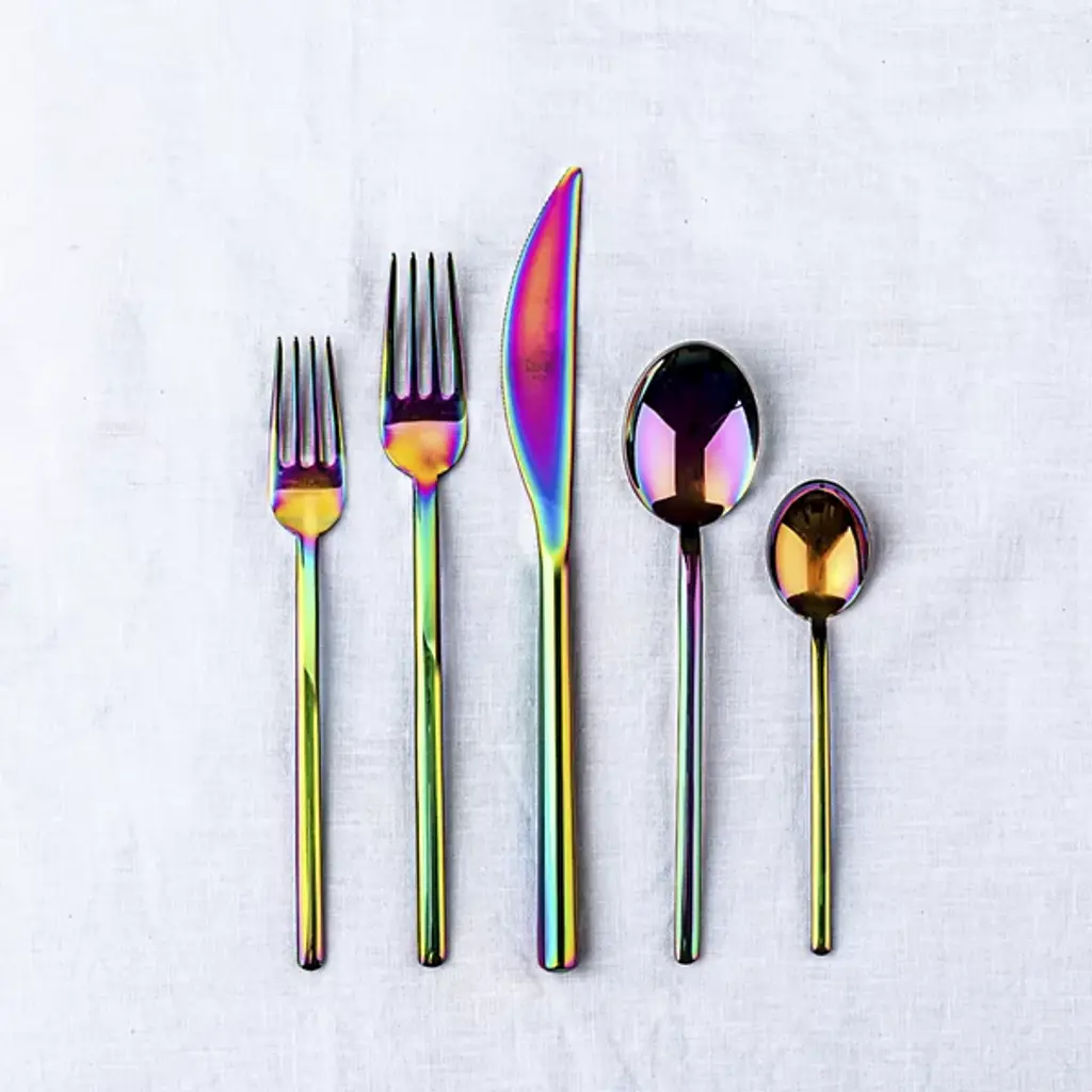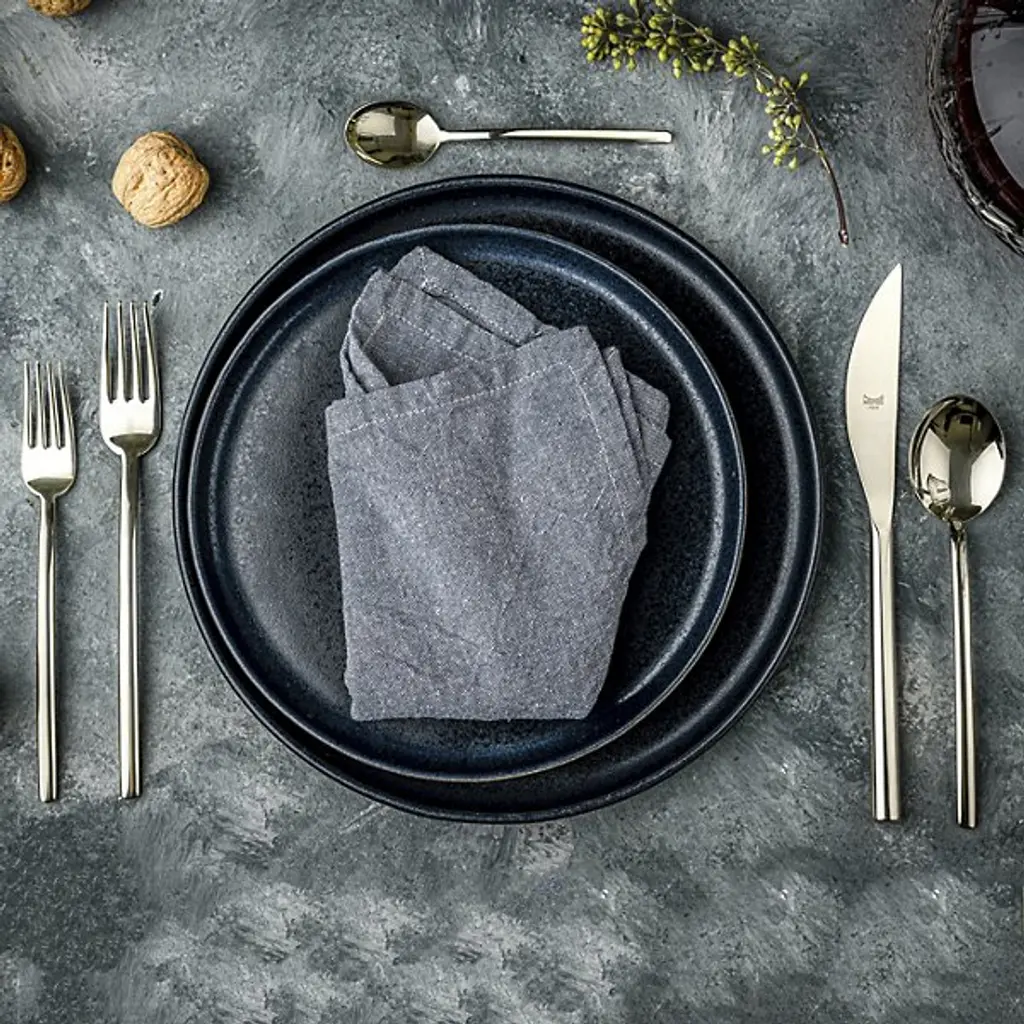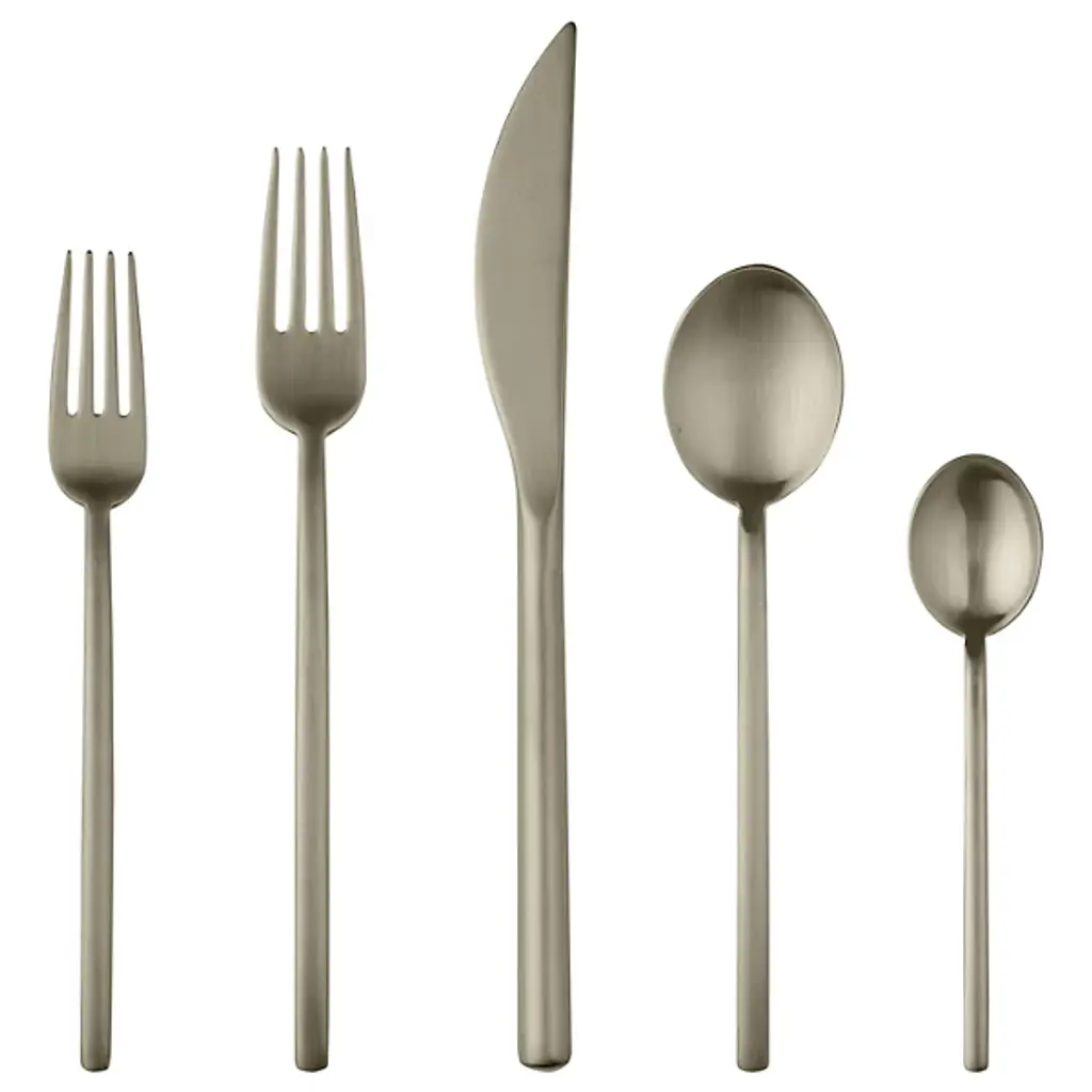 The Due 5-Piece Flatware Place Setting from Mepra is a splendid addition to any dining room, embodying a Luxury/Glam style. This set proudly features 18/10 stainless steel coated with a resilient PVD finish for lasting durability. Crafted in Italy, it combines elegance with practicality, as it is dishwasher safe and hygienic. This cutlery set's sophisticated design complements any fine-dining setting, making it an essential piece for those who appreciate luxury in their dining experience.