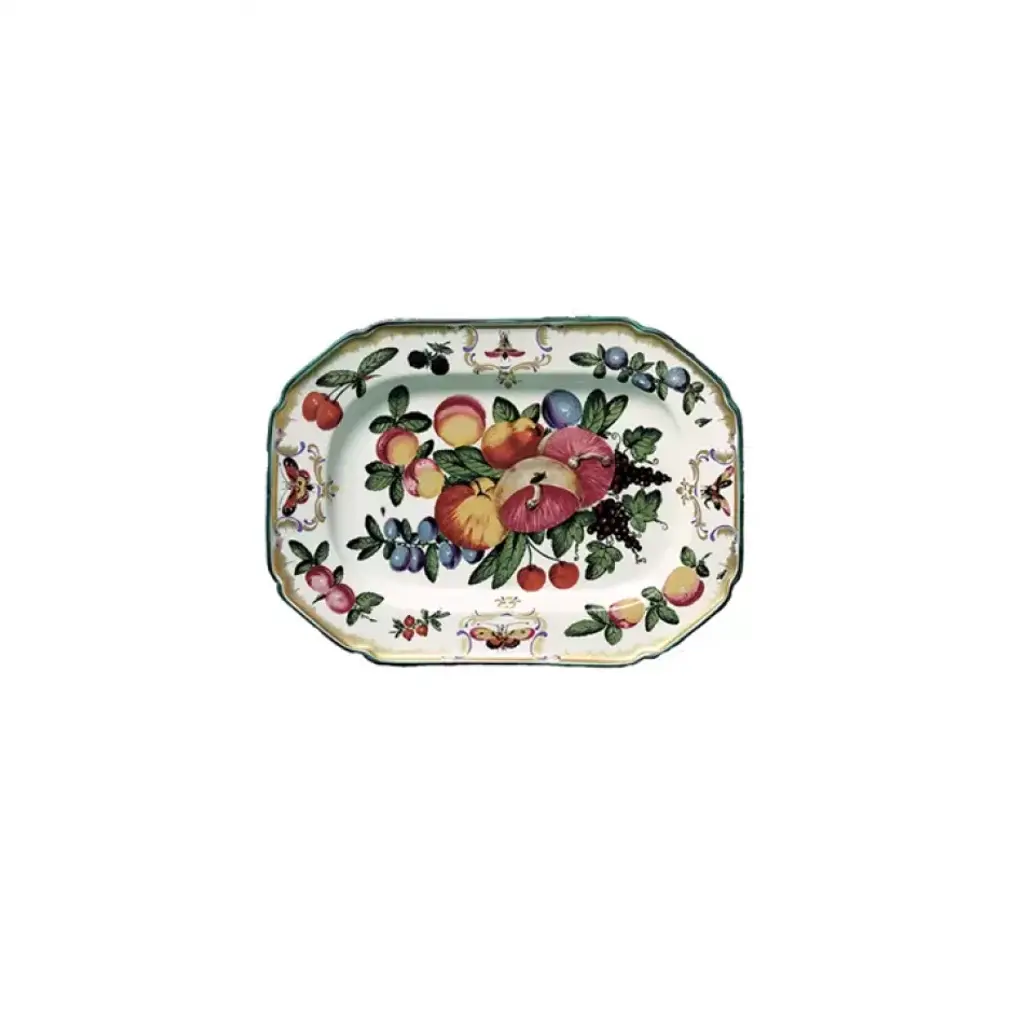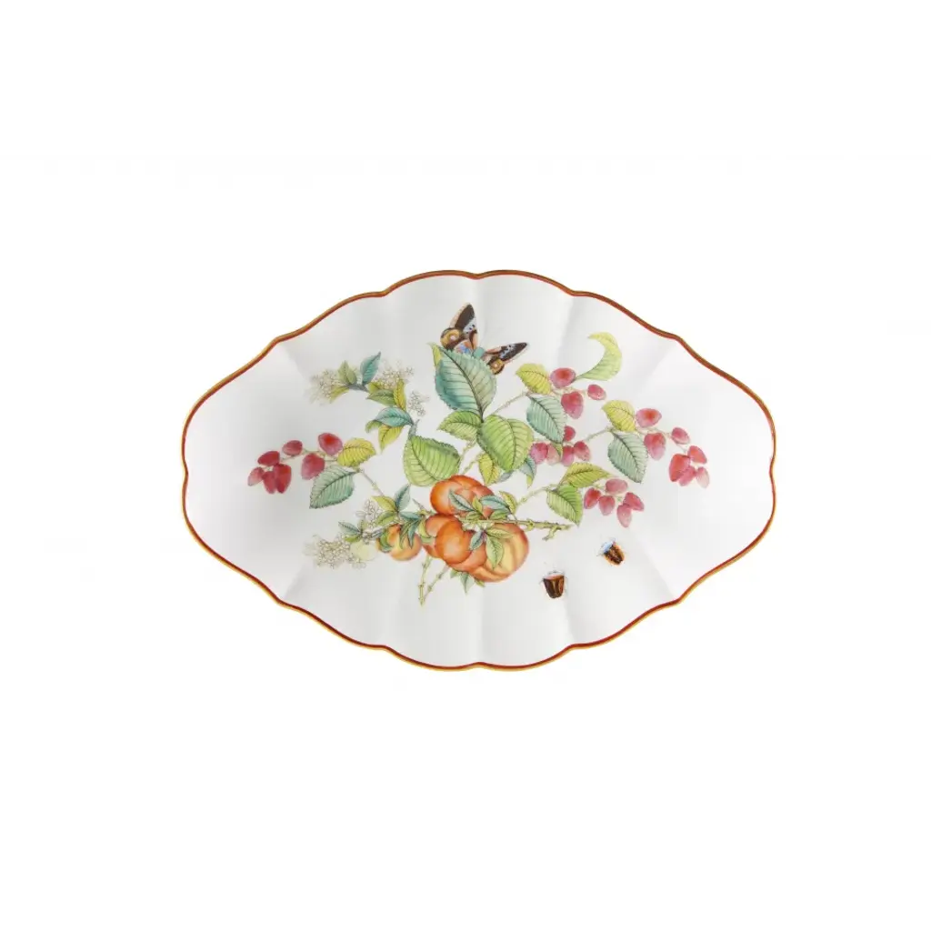 This highly decorated oval dish is a beautiful and useful addition to the pattern based on an original antique shape. A favorite with brides, Mottahedeh specializes in luxurious patterns and unique, elegant shapes that are reproduced from china found in museums and historical societies. The patterns feature complex and vibrant colors, and hand-painted gold decoration. The pieces are surprisingly fresh and timely, and look wonderful in both contemporary and traditional dining rooms.