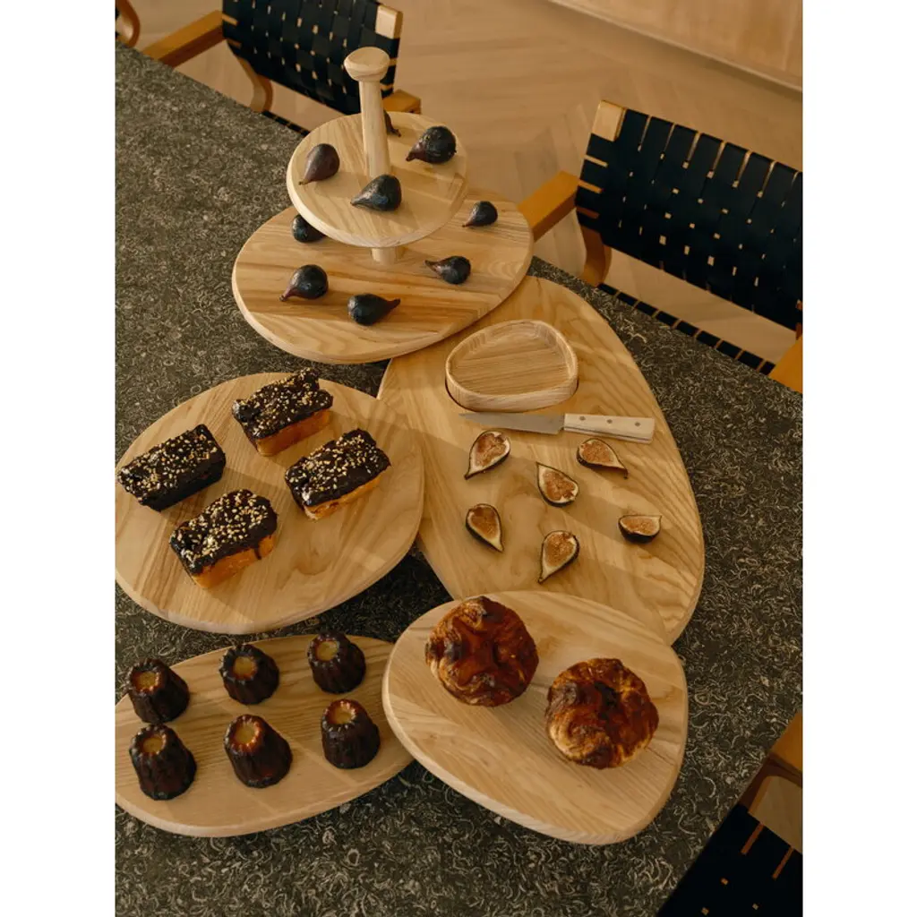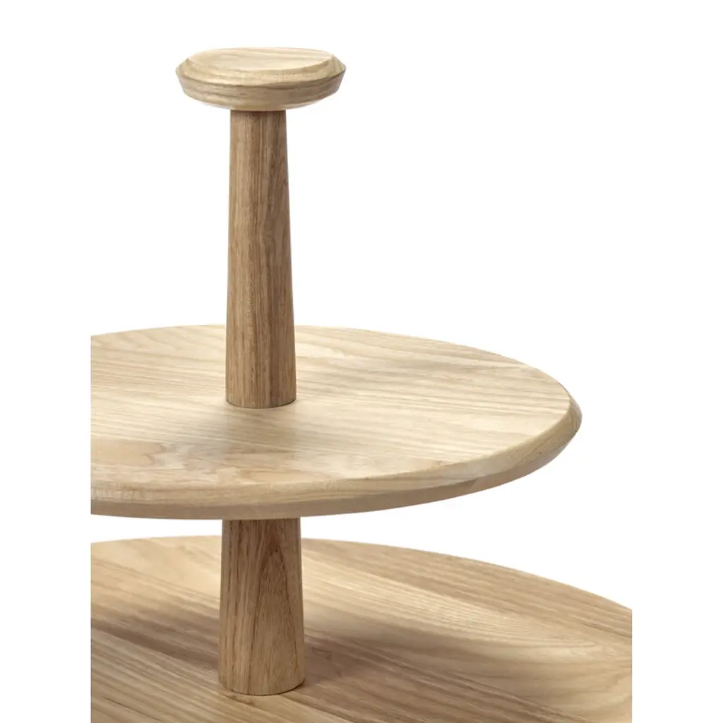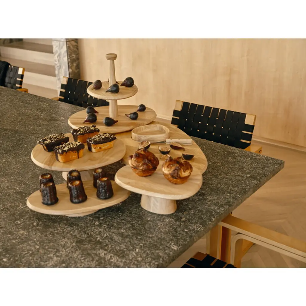 Serax's two-tiered Dune cake stand offers an elegant backdrop for birthday cakes as well as everyday sweet delights, and the footed wooden cake stand can also be used for serving savory treats. Made of matt-varnished ash, the cake stand is adorned with gently contoured lines and natural grain patterns of wood. Designed by Kelly Wearstler, the Dune collection consists of tableware inspired by ancient pottery as well as minimalist glassware. What ties them all together are the charming rims that encircle each piece. Every piece in the collection is designed for easy mix-and-match, whether you're setting the table for everyday dining or a festive occasion.
