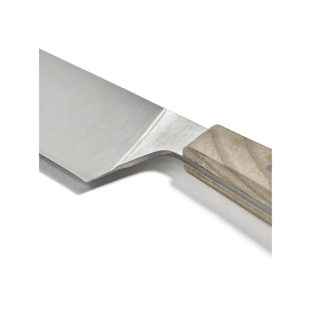 The Dune chef’s knife by Serax is both a practical daily tool and a miniature work of art in one sleek, razor-sharp form. Made from stainless steel, the knife's blade is hand-cast and hand-polished for exceptional precision and durability. The white ash handle, defined by a distinctive split line running along its length, lends the Dune knife its signature character. Designed by Kelly Wearstler, the chef's knife sits beautifully alongside the Dune tableware inspired by the timeless allure of antiquity. Created to mix and match effortlessly, the collection brings refined versatility to your kitchen and complements settings from casual everyday meals to the most elegant dining occasions.