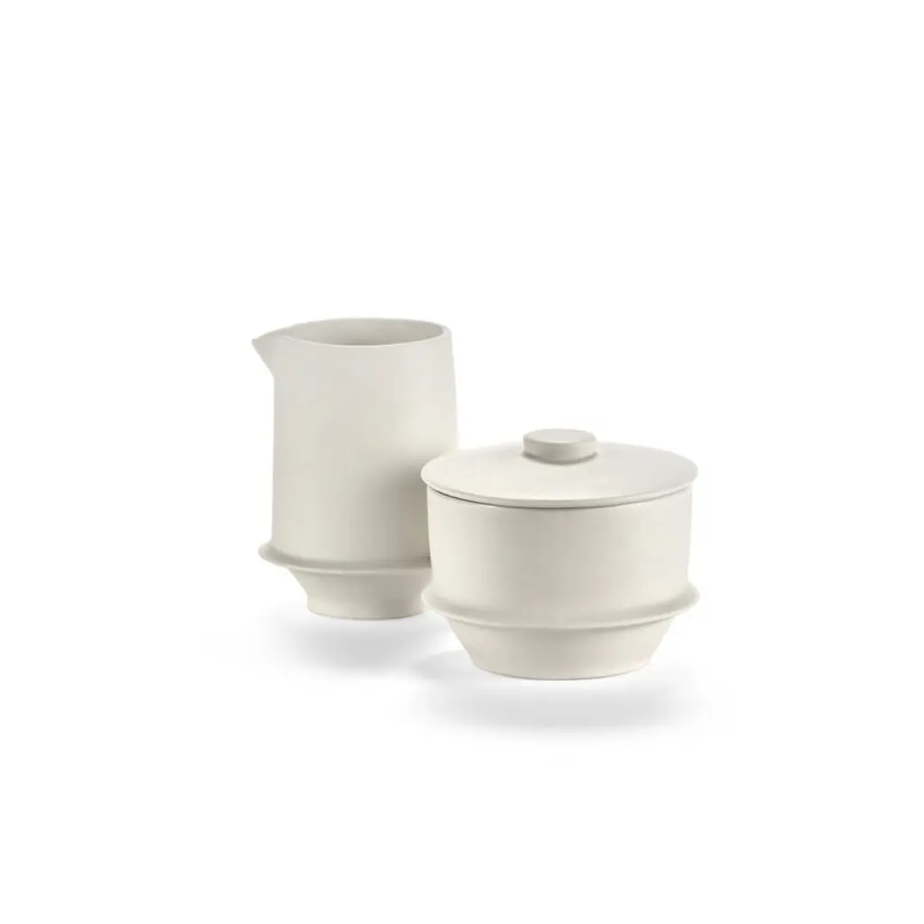 The Dune milk jug by Serax adds the finishing touch to any coffee or tea setting, whether for everyday use or special occasions. It can also double as a small pitcher for salad dressing or sauces. Instead of patterns, the ceramic Dune tableware is adorned with shapes and textures: a glazed interior contrasts beautifully with the unglazed exterior, and delicate rims complete the look. Designed by Kelly Wearstler, the Dune collection consists of tableware inspired by ancient pottery as well as minimalist glassware. What ties them all together are the charming rims that encircle each piece. Every piece in the collection is designed for easy mix-and-match, whether you're setting the table for everyday dining or a festive occasion.