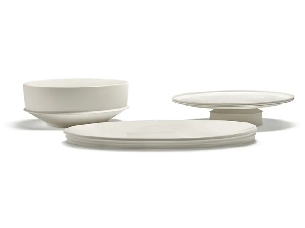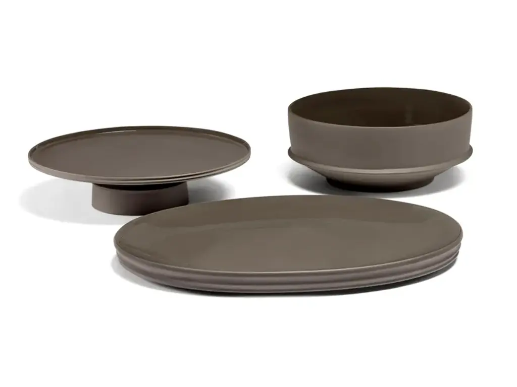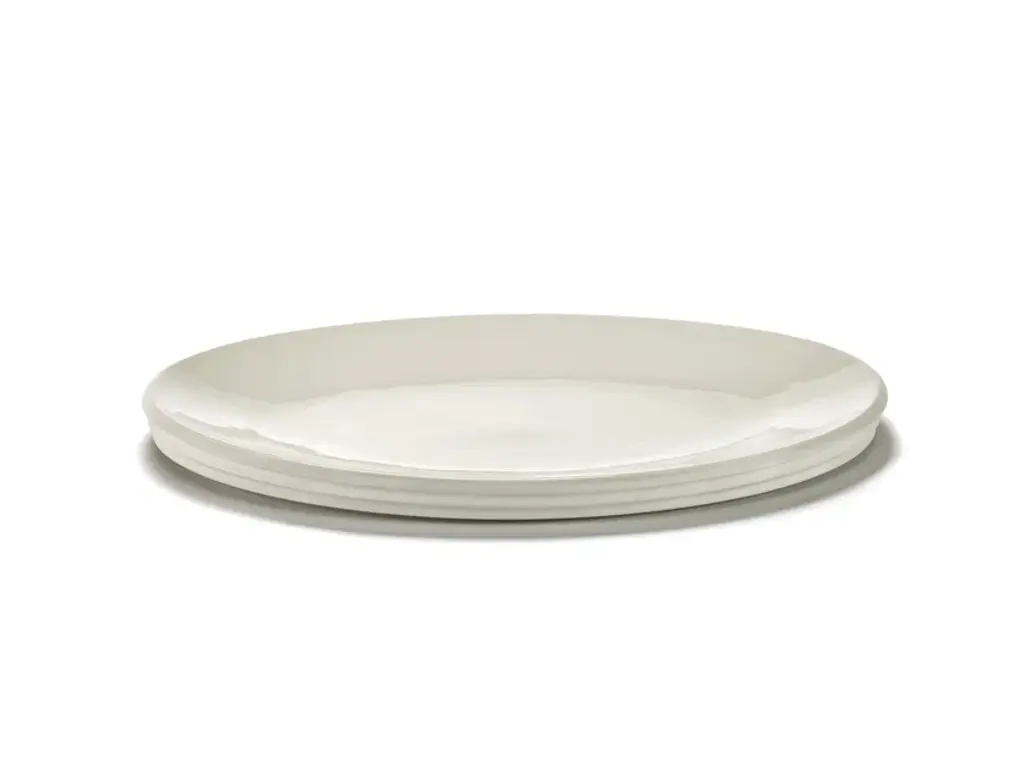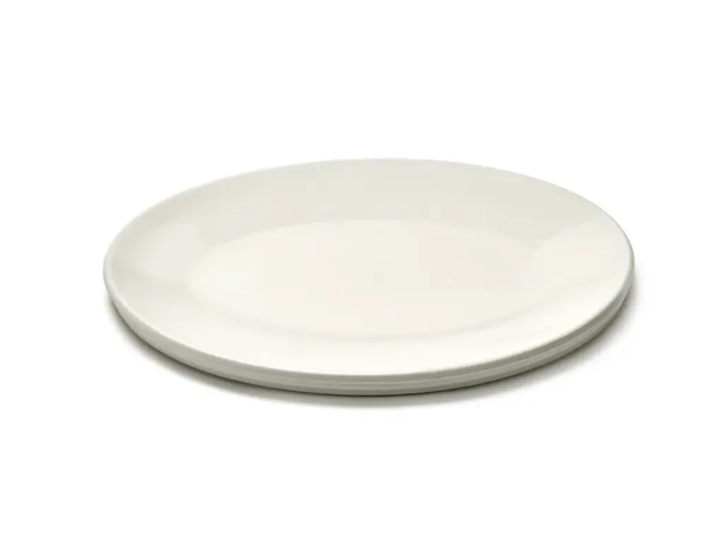 This Dune porcelain oval plate is inspired by ancient ancient techniques and has a beautiful two-tone finish. The sculpted cracks and rims create a striking contrast, making this collection an eye-catcher.Material: porcelainProduct finish: matDishwasher resistant: yesMicrowave oven resistant: yesOven resistant: yesMax. oven temperature °C: 200 celsiusFood-safe: yes The Dune tableware line by leading American designer Kelly Wearstler is an elegant nod to ancient pottery. Wearstler accentuated the sculptural shapes of the porcelain plates and serving dishes by combining two finishes – matte and glossy – using balanced detailing to create striking volumes and harmonious compositions. Mass-colored porcelain, available in 3 earthy hues: alabaster, clay and slate.