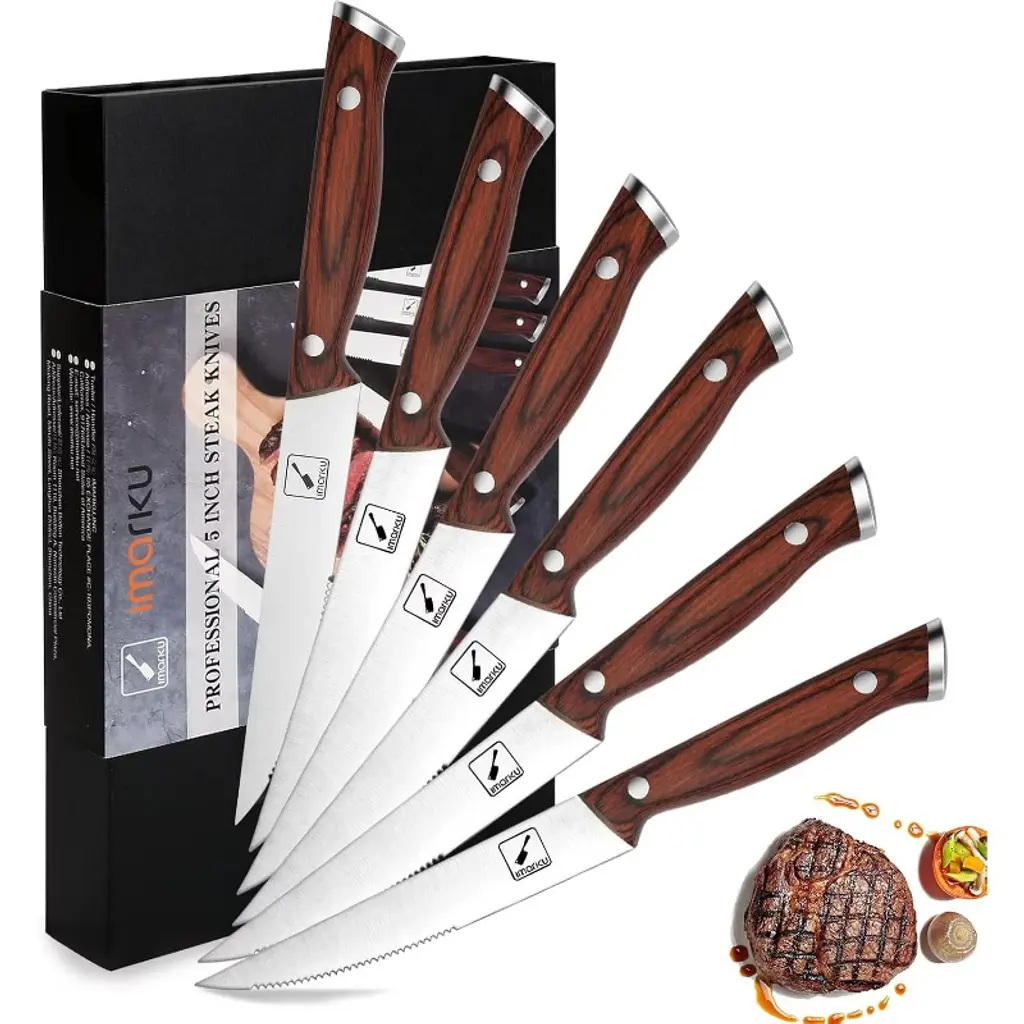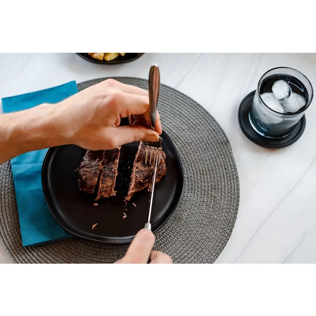 Experience the pinnacle of culinary precision with our Set of 8 Steak Knives. Designed to enhance your dining moments, these knives are the embodiment of elegance and functionality. Crafted from premium stainless steel, our steak knives are known for their exceptional sharpness, corrosion resistance, and longevity. Whether you're cutting through a juicy T-bone steak or a tender chicken breast, these knives make each slice effortless. The classic design of our steak knives not only adds an air of sophistication to your dining table but also provides a comfortable and secure grip. The full tang construction and triple-riveted handles ensure these knives are as durable as they are beautiful.Beyond steak, these knives are versatile enough to handle a variety of meats, making them an indispensable part of your kitchen arsenal. Cleaning is a breeze simply hand wash or place them in the dishwasher for quick and convenient maintenance. Our Set of 4 Steak Knives makes for an ideal gift for food enthusiasts, home chefs, and anyone who appreciates the joy of a well-prepared meal. Elevate your dining experience and impress your guests with the perfect cut every time. Choose quality, choose precision, choose Dura Living.