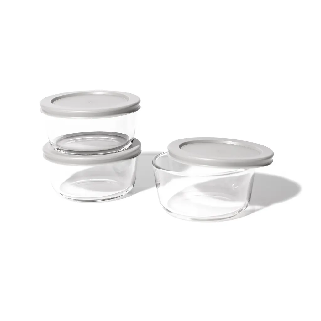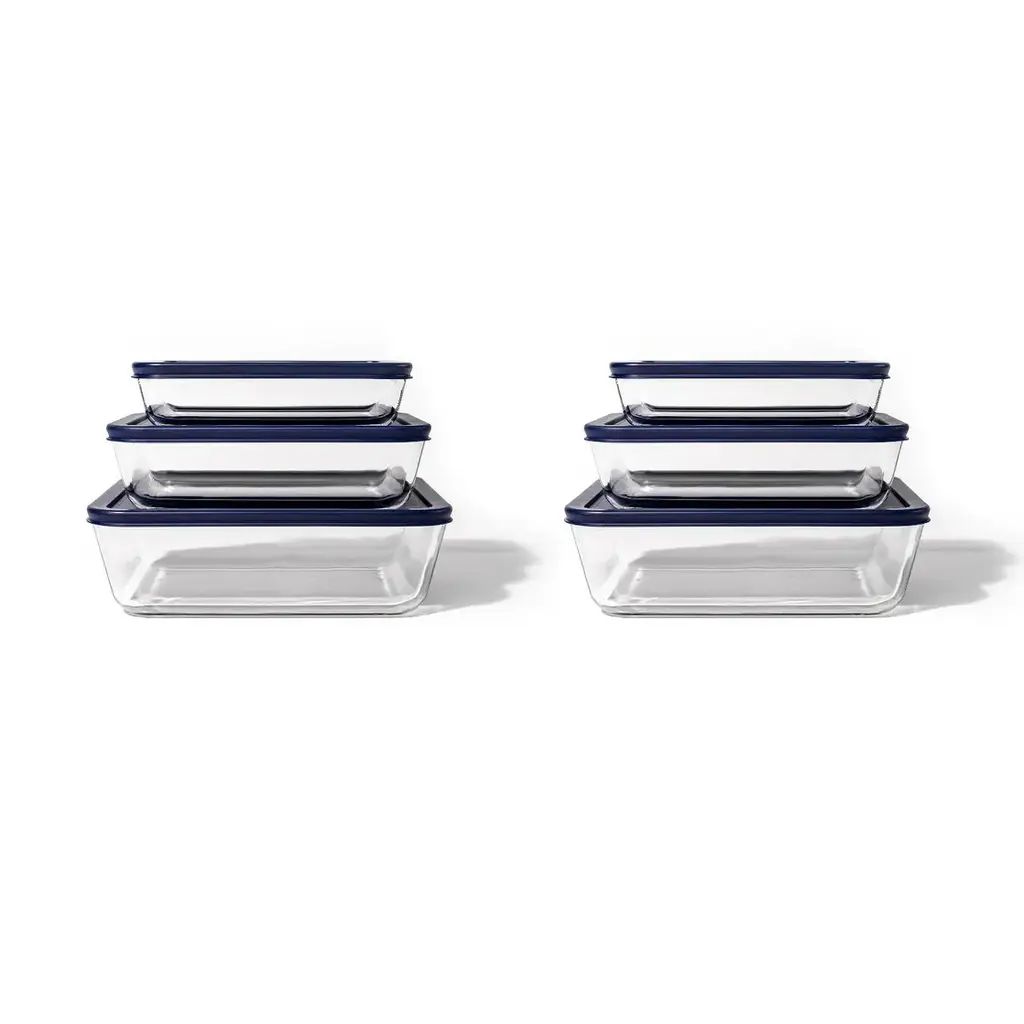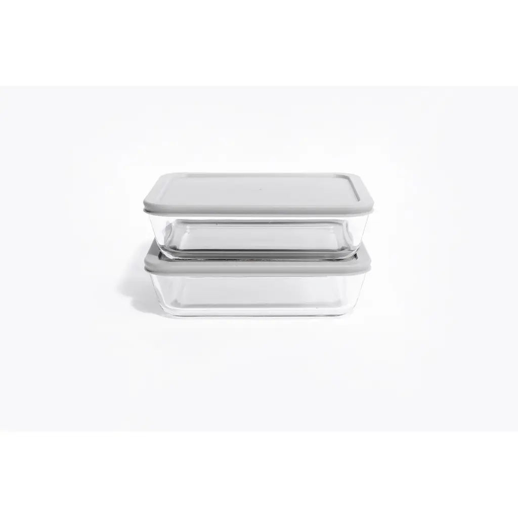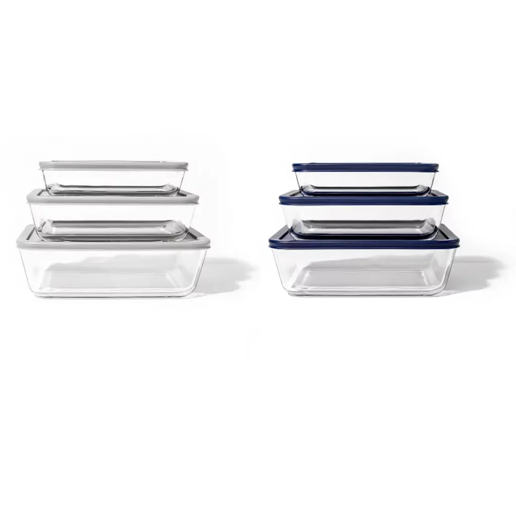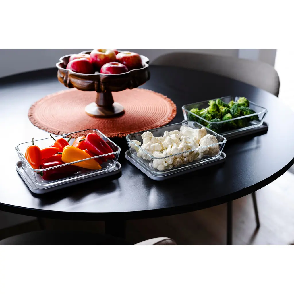 Dura Living Glass Food Containers - 3 Cup Rectangular Set - Microwave & Dishwasher Safe, Bpa-Free Lids - 6 Piece Set (3 Containers + 3 Lids) - Grey