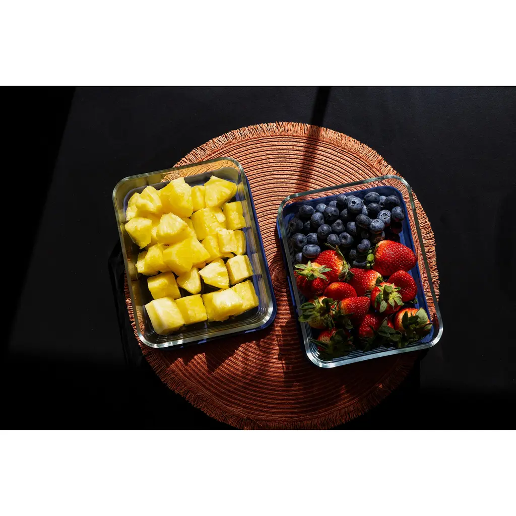 Dura Living Glass Food Containers - 6.55 Cup Rectangular Set - Microwave, Oven, & Dishwasher Safe, Bpa-Free Lids - 4 Piece Set (2 Containers + 2 Lids) - Blue