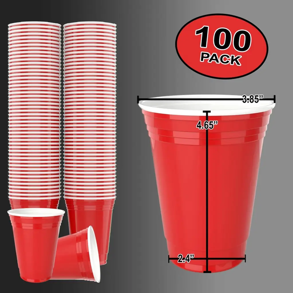 Durame Red Disposable Large Plastic Cups For Party & Fun Pong Games - 16 Oz 100 Pack