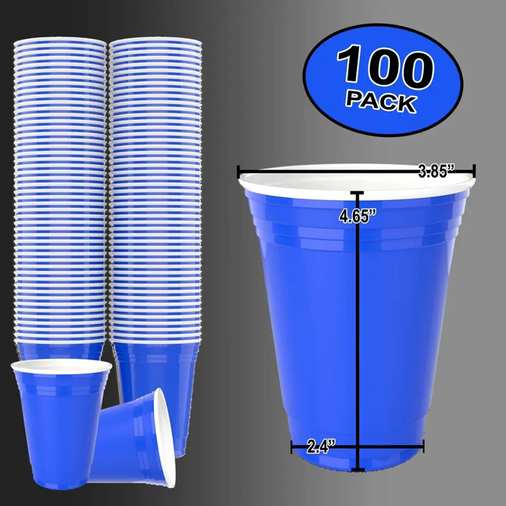 Durameg Blue Disposable Large Plastic Cups For Party & Fun Pong Games - 16 Oz 100 Pack
