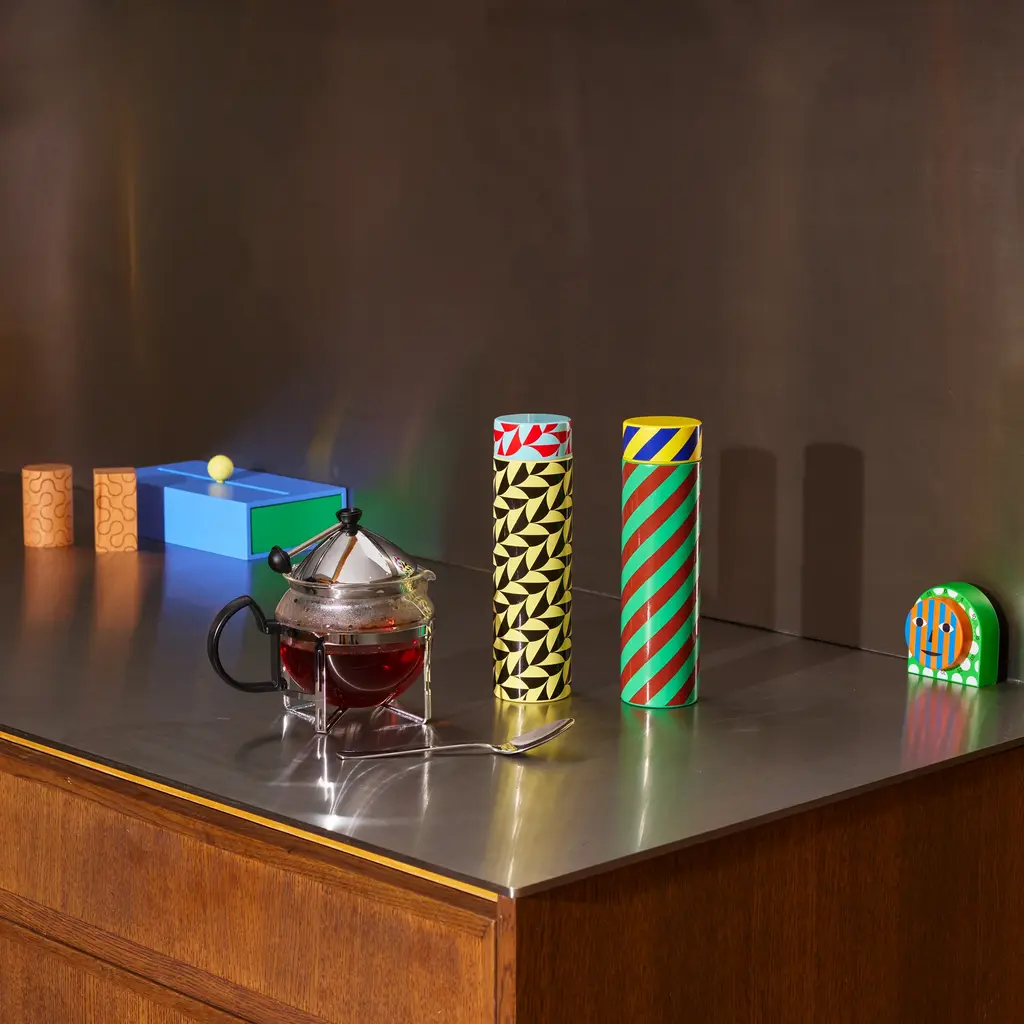MoMA Exclusive: Sporting the patterns and unexpected color combinations that Brooklyn-based designer Ellen Van Dusen is known for, this thermal bottle brings happy vibes to your daily beverage needs. The bottle will keep hot drinks warm and cold drinks cool for at least 12 hours. Use this thermal bottle for hot coffee or cocoa, water, your favorite cold beverages, even soup. The Dusen Dusen Pattern Thermal Bottle is designed in collaboration with Areaware and measures 8.25h x 2.25"diam. and holds 13.5oz.