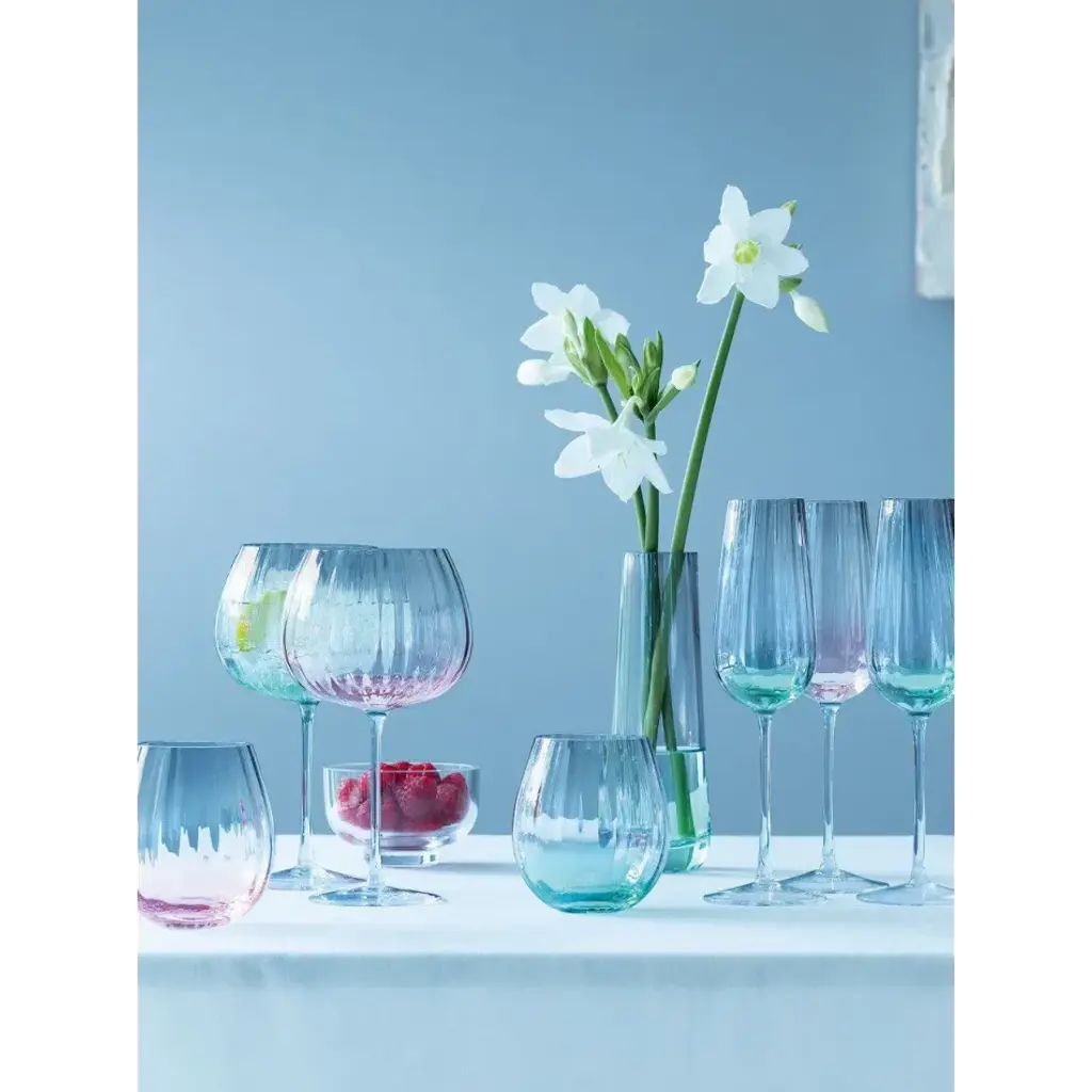 Mouth-blown and hand-painted champagne glasses with a finely-fluted texture.