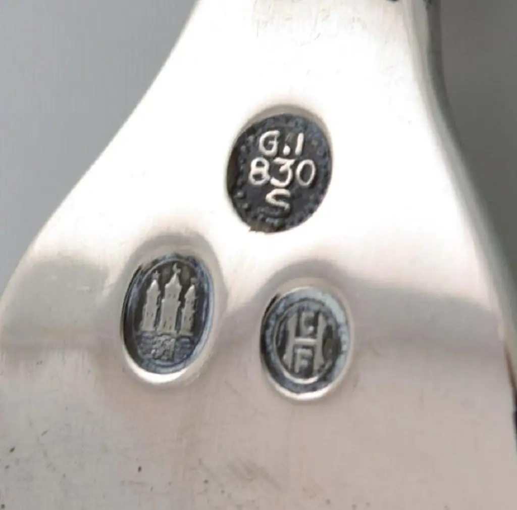 Early Georg Jensen Lily of the Valley fish knife in solid silver 830. Dated 1915-1930. Six knives are available.Measures: Length: 20.7 cm.In excellent condition.Stamped.Our skilled Georg Jensen silversmith / goldsmith can polish all silver and gold so that it appears new. The price is very reasonable.