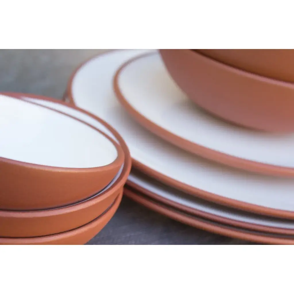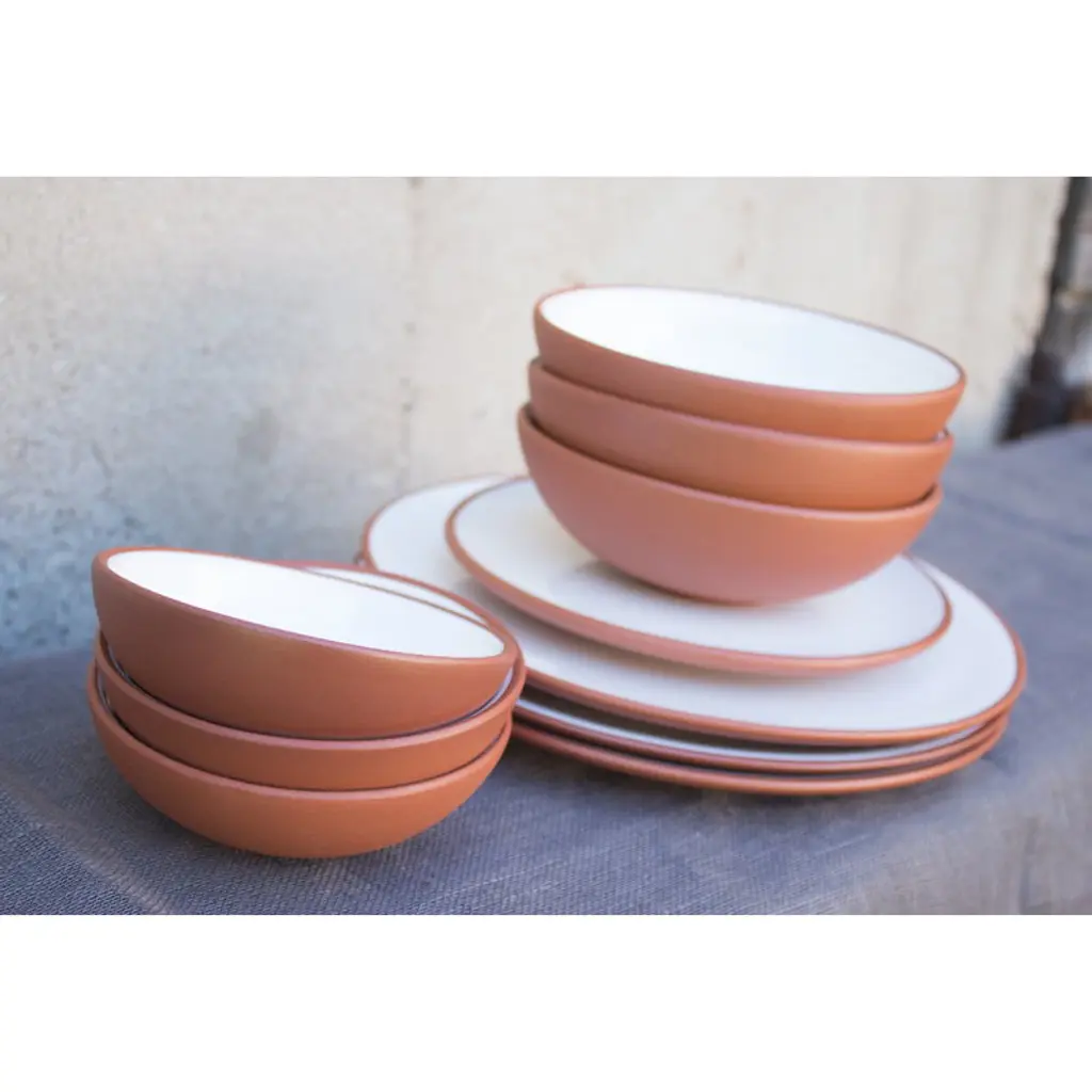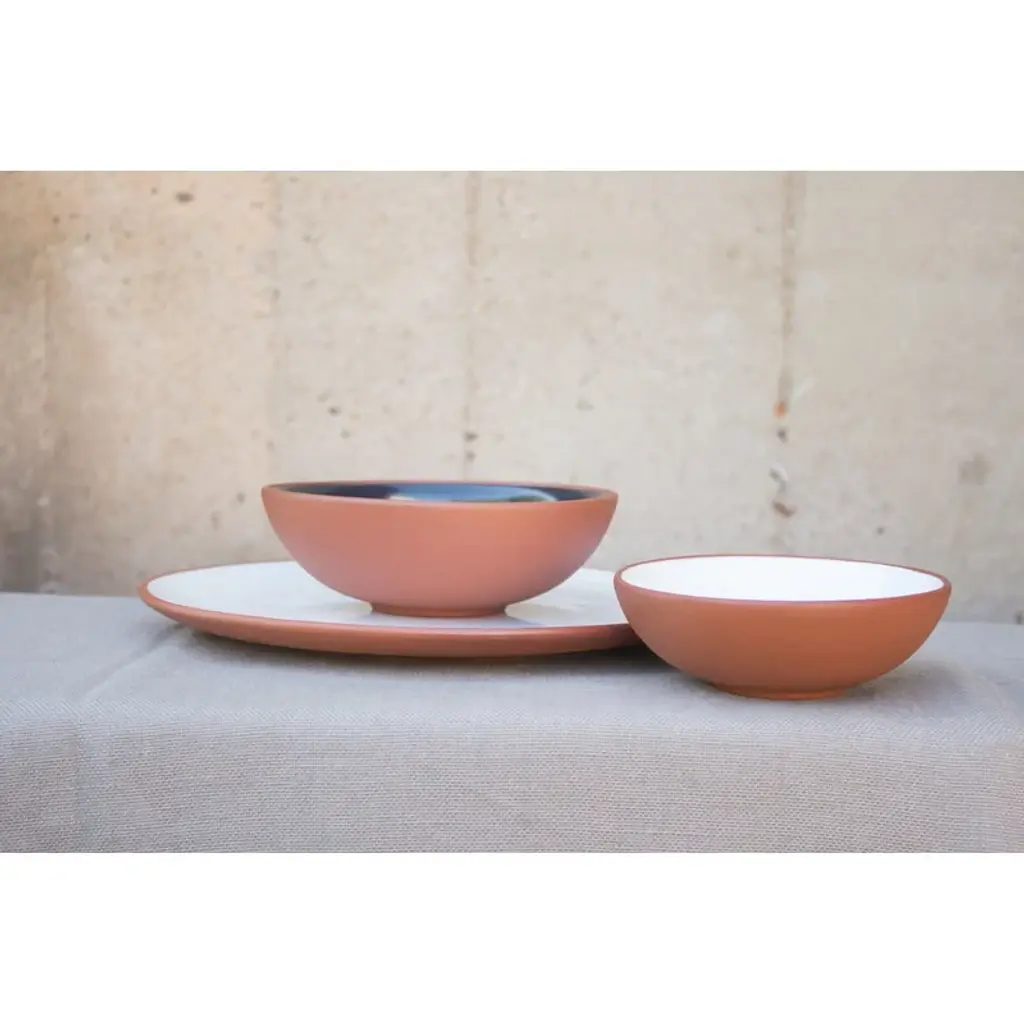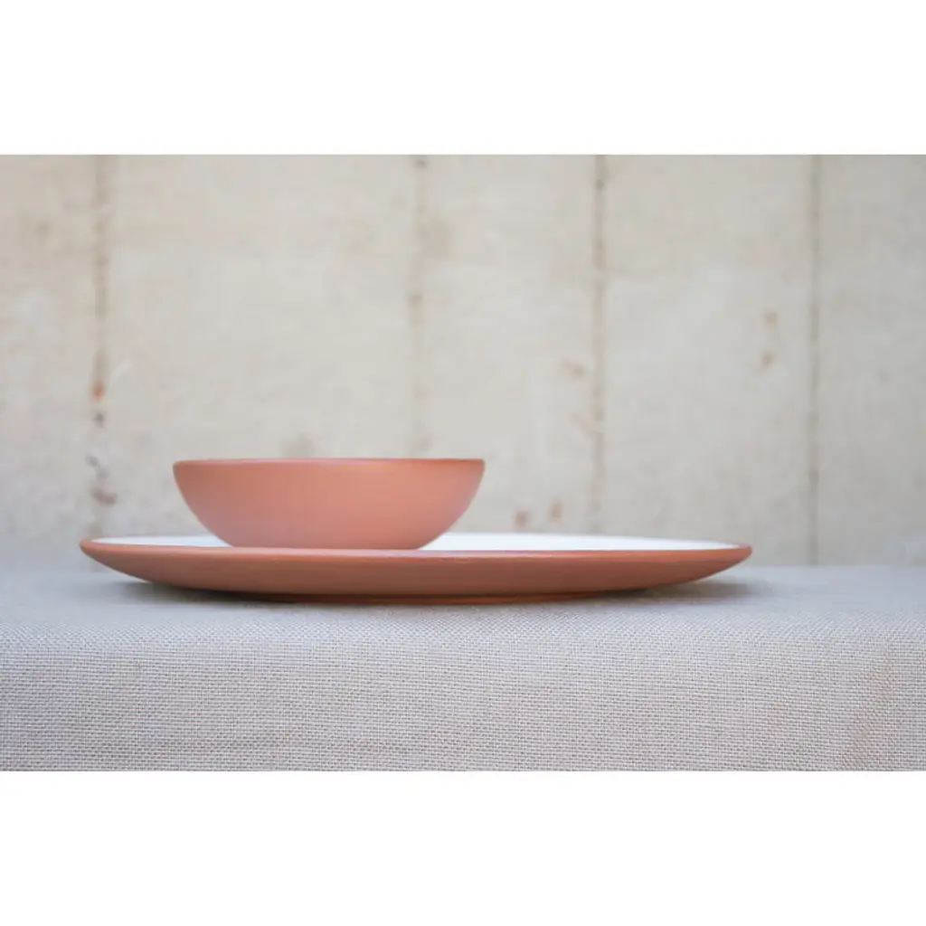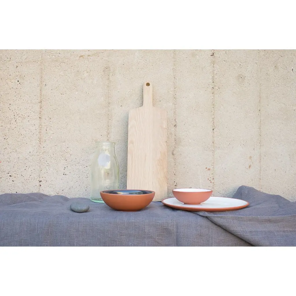 Vaidava's Earth collection combines Latvian ceramic traditions and minimalist Nordic design. Made of Latvian red clay, the Earth plates have been glazed with white, lead-free glaze on the inside, and the unglazed outside has simply been polished smooth. The natural tones and soft silhouettes of the Earth collection frame the food beautifully in both daily and festive table settings. Handmade in Vaidava’s own pottery in Latvia. Packed in a recycled cardboard box.