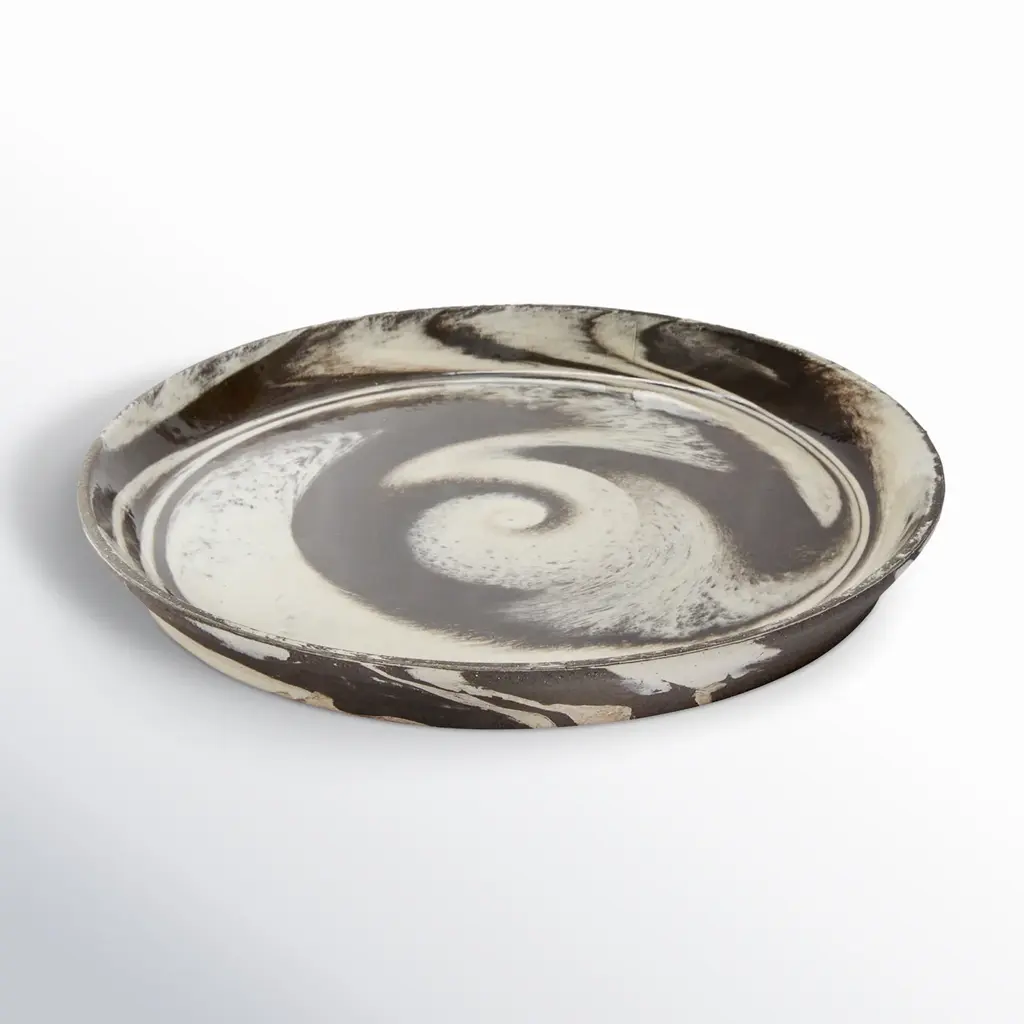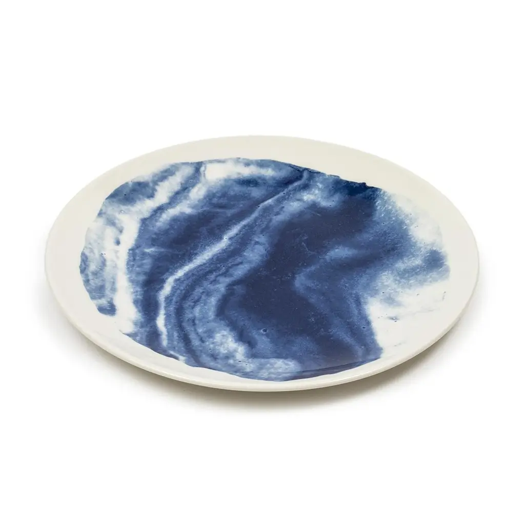Indigo Storm, 1882 Ltd. with Faye Toogood. Faye Toogood’s range of ceramic designs for 1882 Ltd. celebrates the accidental beauty of natural imperfections. Indigo Storm is a bold interpretation of traditional creamware forms; drawing upon the chance patterns created when pigment added to the slip coating does not fully blend. The whorls and eddies resulting from these experiments – like mini meteorological formations – make up the collection’s central motifs, appearing on jugs, plates, bowls and cups. The fine earthenware employs the evocative tones of English Delftware: cream offset with the familiar rich blue.