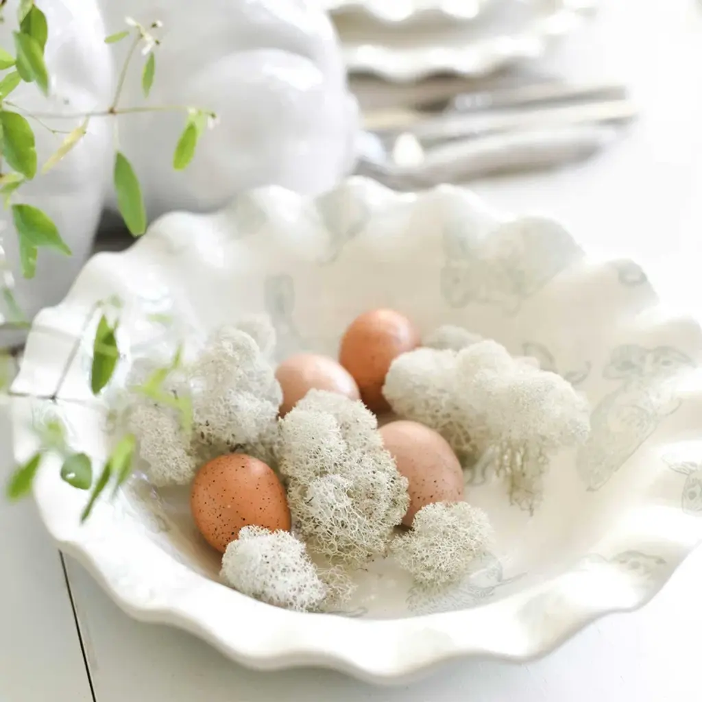 Elevate your holiday table with the Speckled Rabbit Ruffle Best Bowl. The ruffle edges, speckle pattern, and hand-drawn rabbit pattern of this bowl creates a playful yet elegant look. The Speckled Rabbit Ruffle Best Bowl compliments your existing serveware pieces for a fine dining experience. The larger size will gently cradle everything from roasted veggies to homemade bread and even decadent desserts.We create Coton Colors products to inspire you to never miss an opportunity to celebrate every day. From the unique shapes and carefully selected colors to every hand-drawn pattern, we artfully design our products from start to finish through the work of our in-house design team in Tallahassee, Florida.