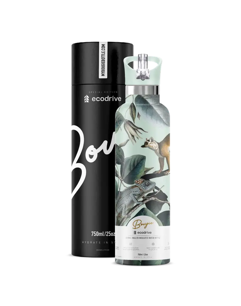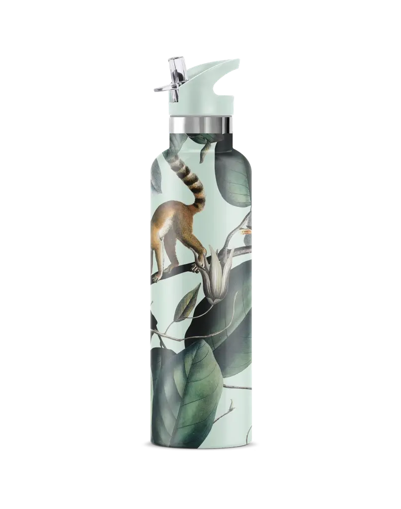 Discover the Ecodrive 25oz. Insulated Water Bottle, where style meets eco-conscious functionality, inspired by the lemurs from Madagascar. This versatile bottle features a convenient Flip 'n' Sip Straw Lid, perfect for sipping refreshing drinks on the go or sharing chilled wine with friends.