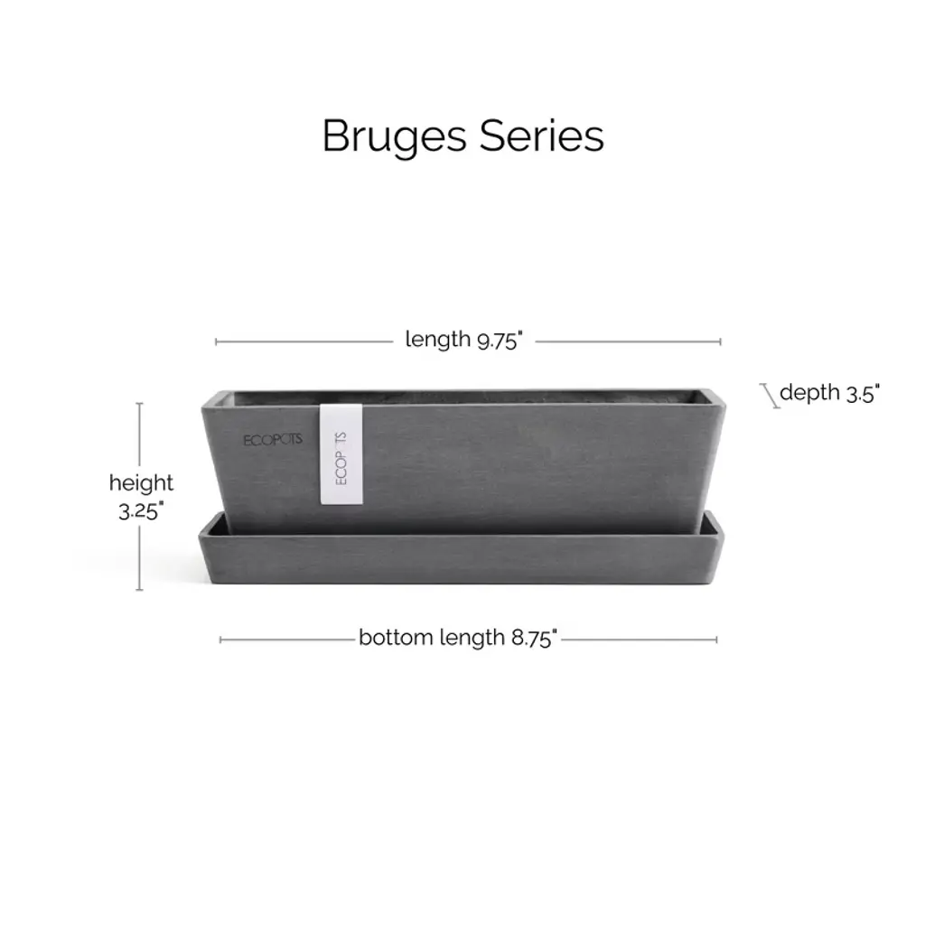 Ecopots Bruges Mini Durable Modern Rectangular Indoor/outdoor Recycled-based Composite Flower Pot Planter With Saucer, Grey, 10"
