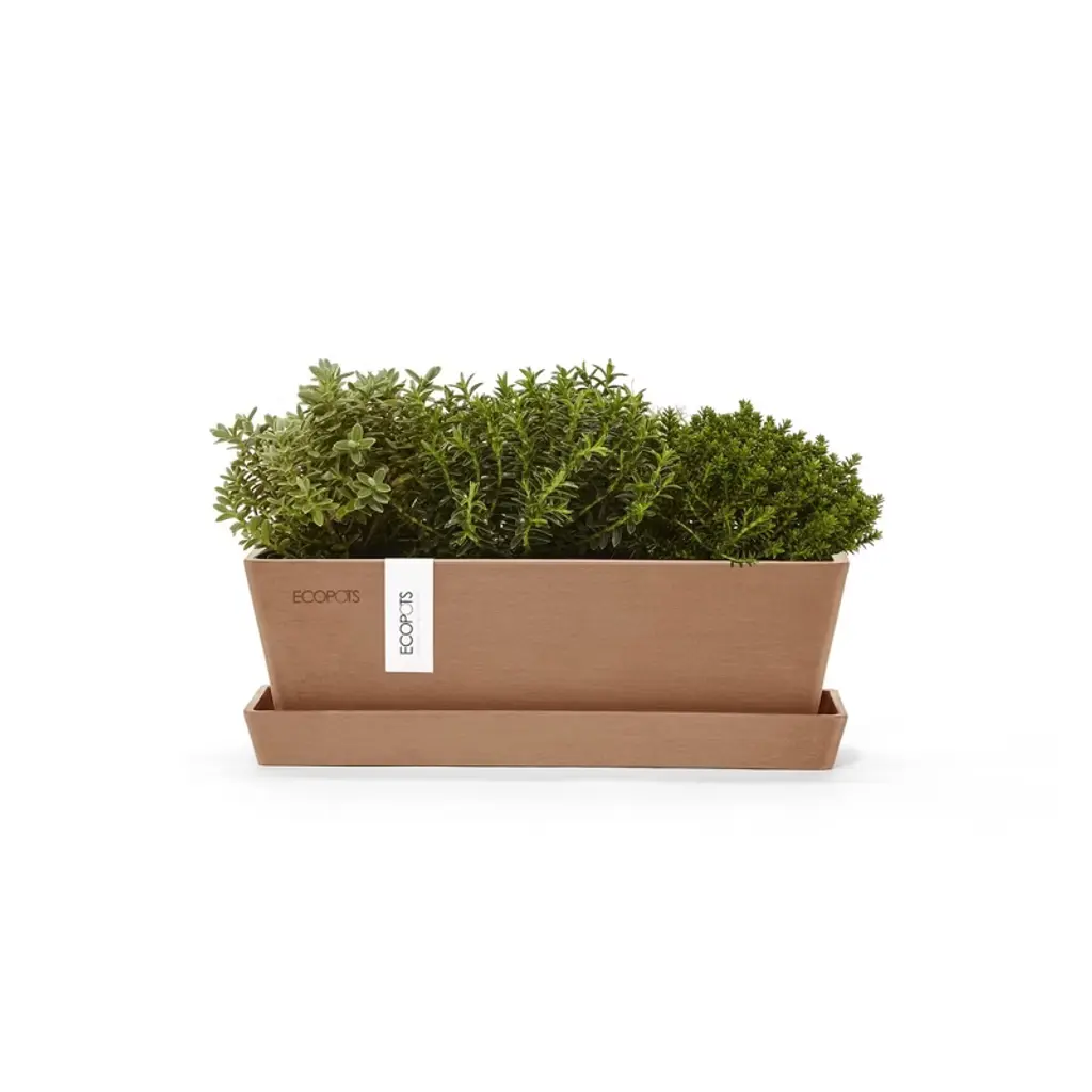 The Ecopots Bruges Mini is a compact, rectangular flowerpot. The smaller size of this planter makes it perfect for adding a dash of green to any small surfaces in your home. Whether you want to plant a mixture of annuals, a selection of herbs or a group of small, ornamental shrubs, this rectangular flowerpot has enough room for a varied collection of plants. This planter comes with the matching saucer to ensure that everything looks neat and well-kept, while also collecting the excess water so that it doesn’t drip from the balcony or windowsill. Using a saucer makes the Ecopots Bruges even more versatile and practical.