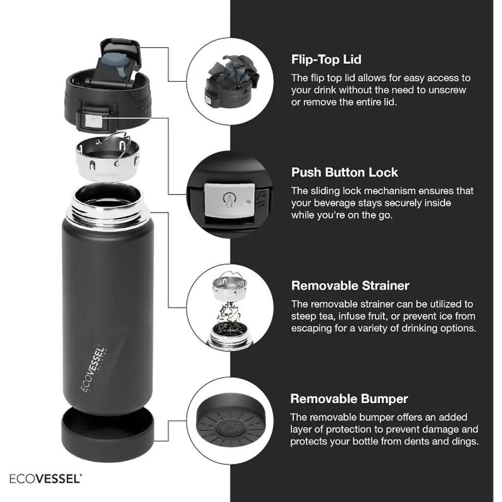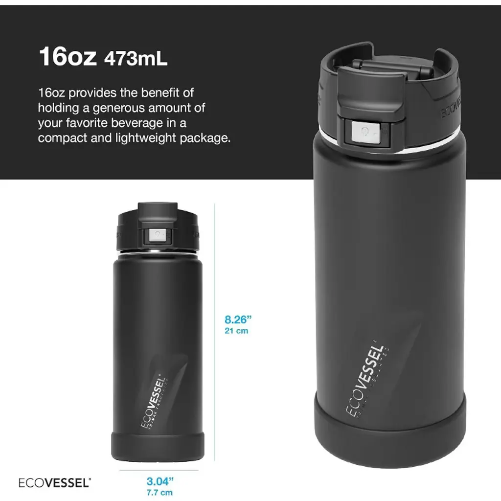 Ecovessel Perk Trimax Insulated Stainless Steel Coffee & Tea Bottle - 16oz - Black Shadow