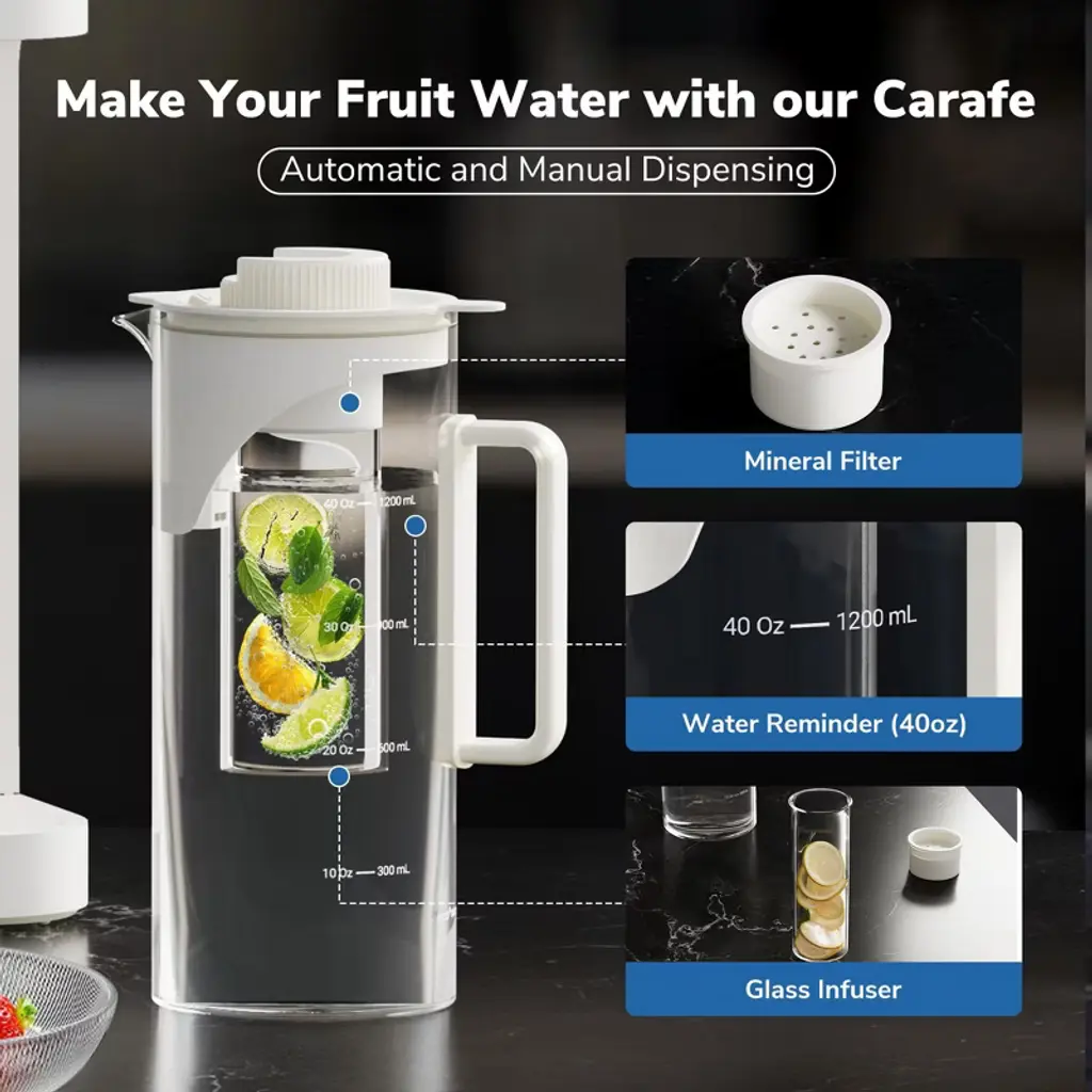 The Replacement Water Filter Pitchers for the Countertop Reverse Osmosis System WFWP-RO-MATE3 are essential for ensuring safe, clean, and refreshing drinking water in your home. This water carafe is meticulously engineered to fit seamlessly into your existing reverse osmosis (RO) setup, allowing for easy installation and replacement to maintain optimal filtration performance.